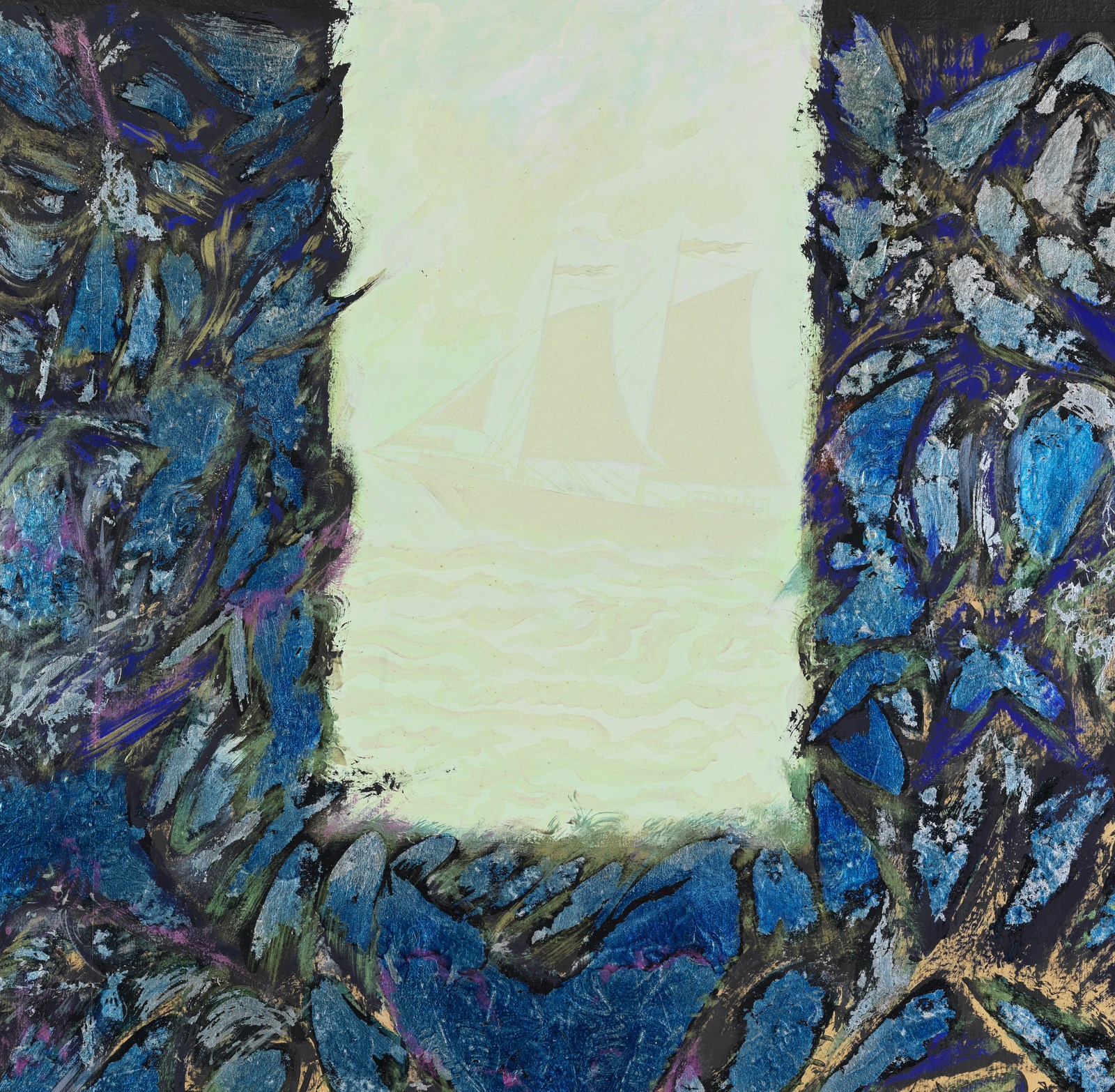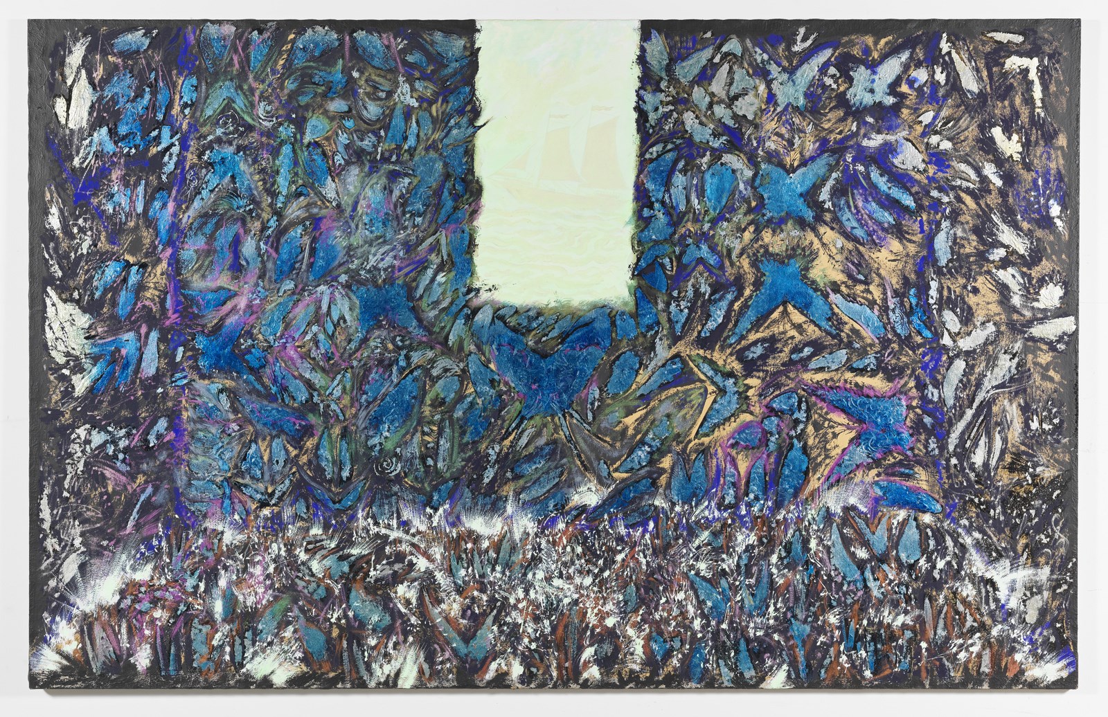 MERLINO SILVIO (n. 1952) La stanza fatta di farfalle. 1984. Tecnica mista su tela. Cm 290,00 x 185,00. Al retro titolo, firma e anno.