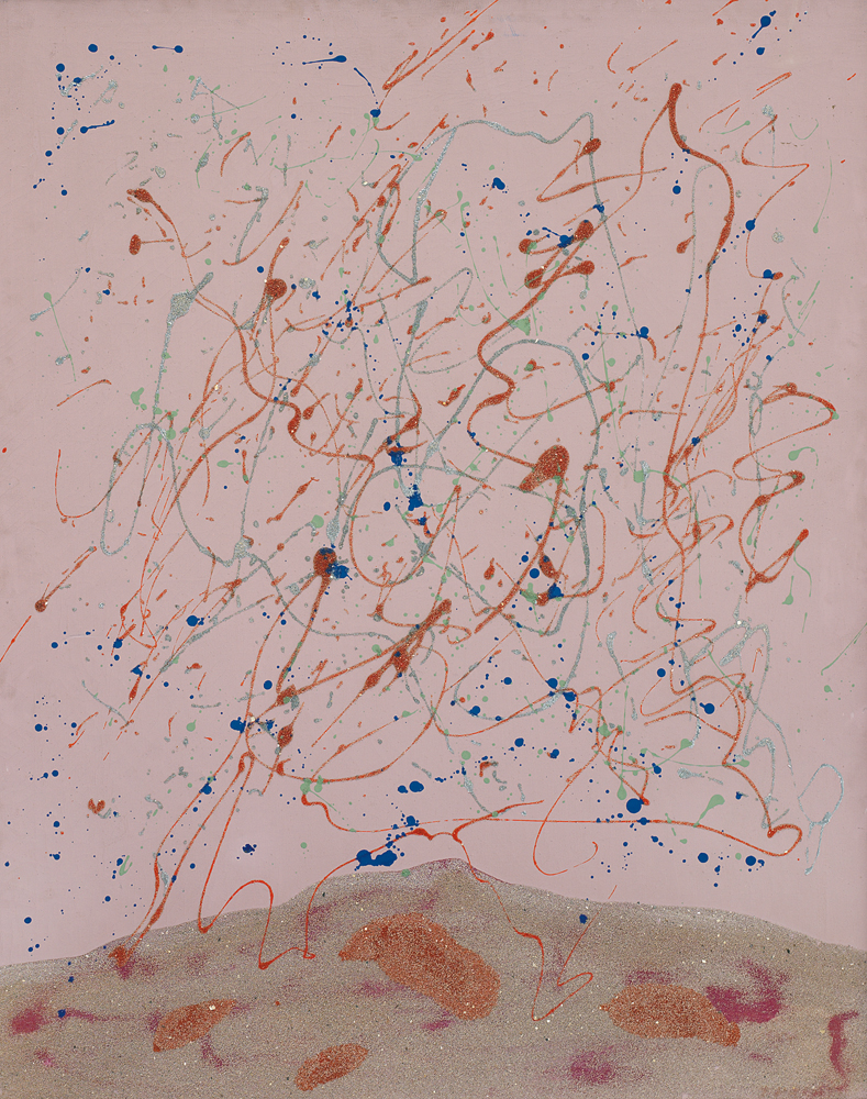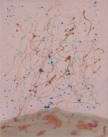 GIULIO TURCATO Mantova 16/03/1912 - Roma 22/01/1995 Paesaggio cinese, 1969 olio e sabbia su tela cm. 100x80, firma poco leggibile in basso a destra, firma, titolo, anno, numero C.12329326521-RPost, etichetta e timbri della Galleria d'Arte La Margherita (Roma) al retro, certificato della Farsetti Arte (PO) allegato, attestato di archiviazione che ne conferma la registrazione presso l'Archivio Giulio Turcato allegato.