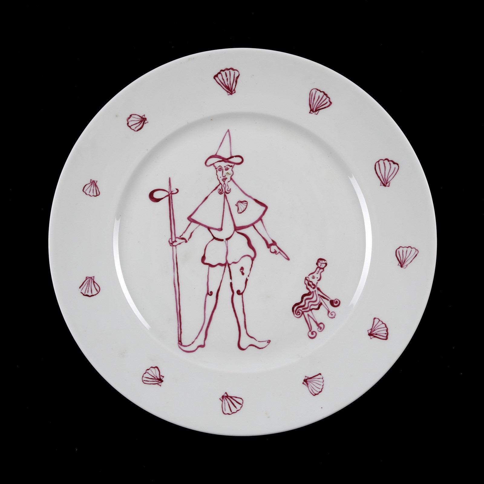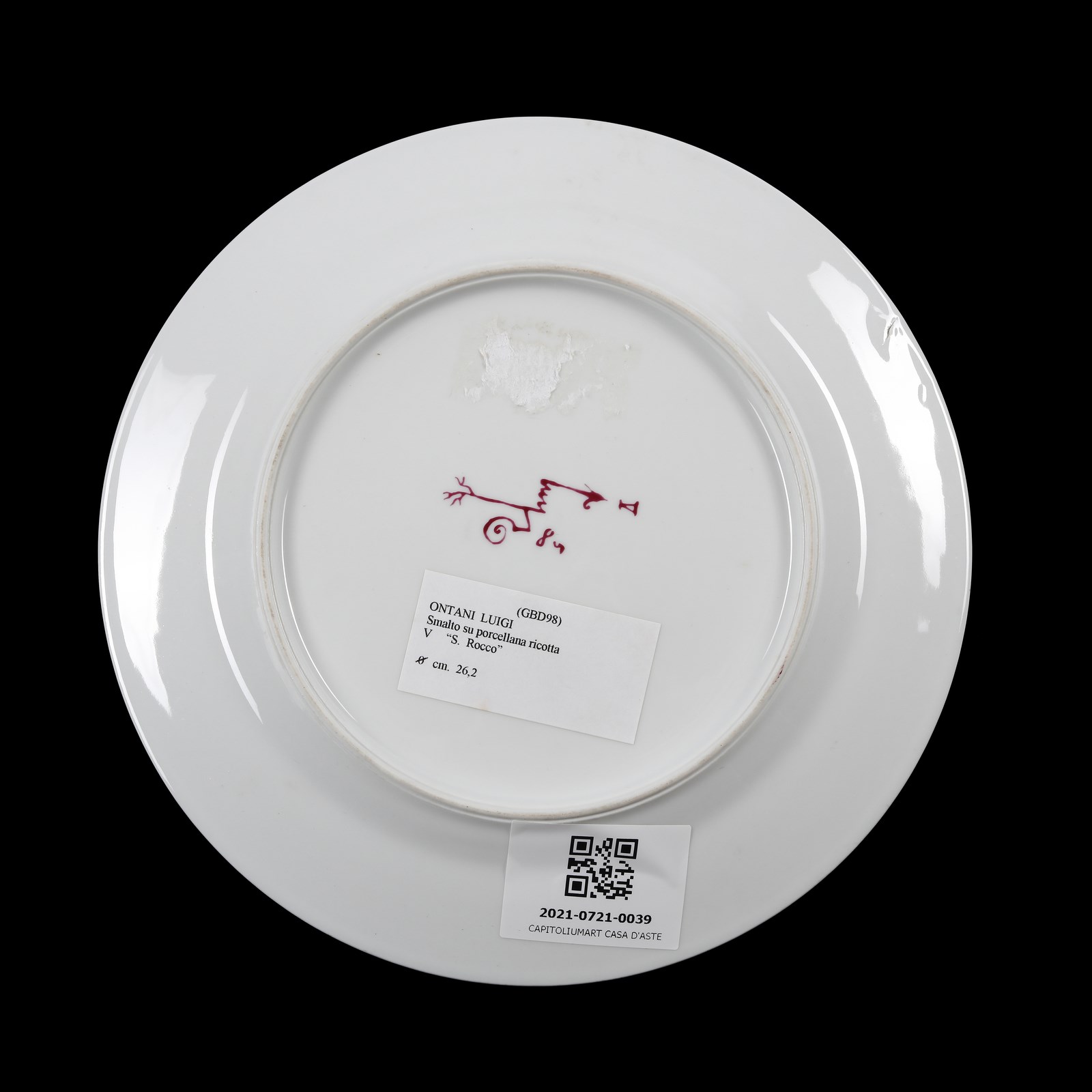 ONTANI LUIGI (n. 1943) San Rocco. 1985. Piatto in ceramica. Cm 26,00 x 26,00. Esemplare unico. Al retro firma e anno.