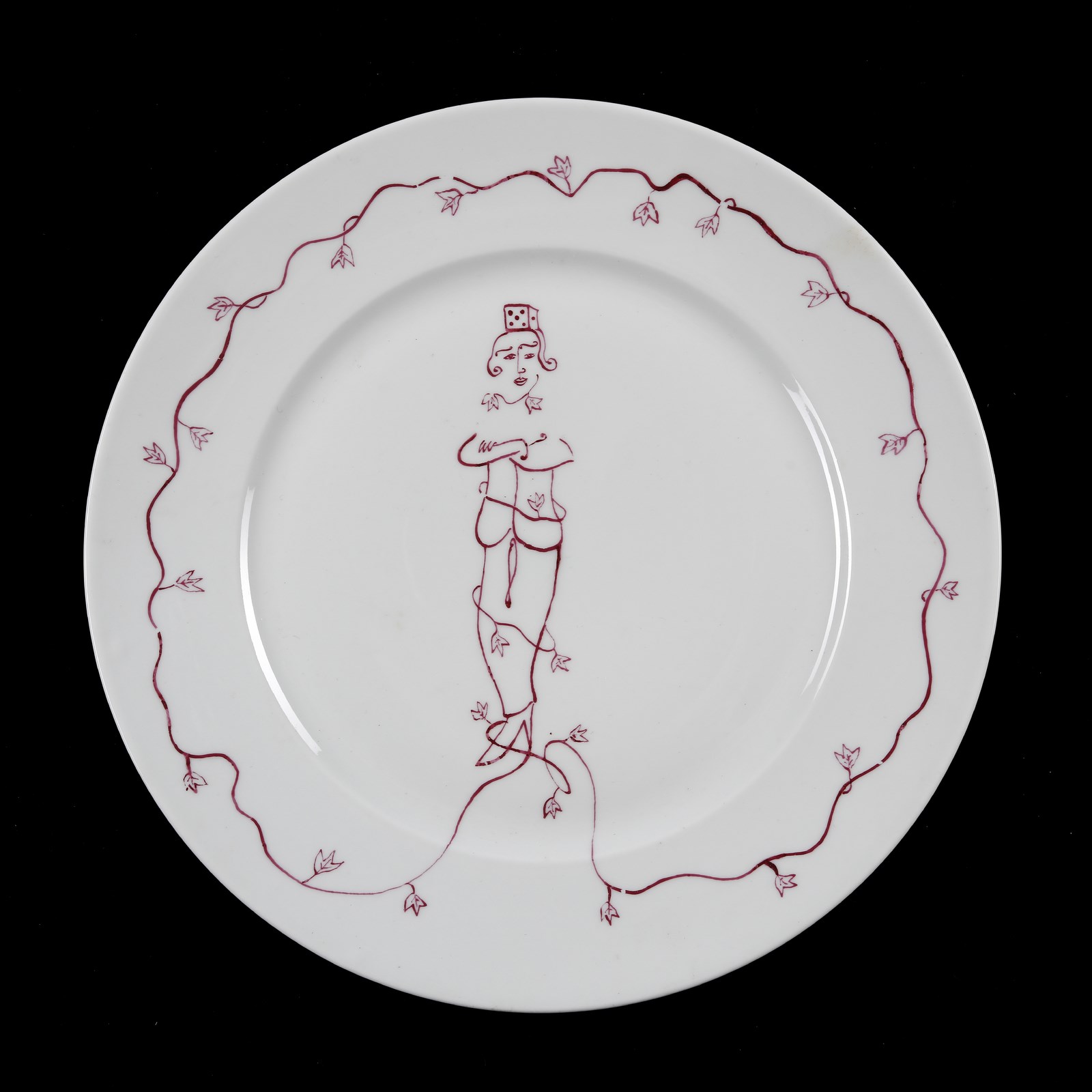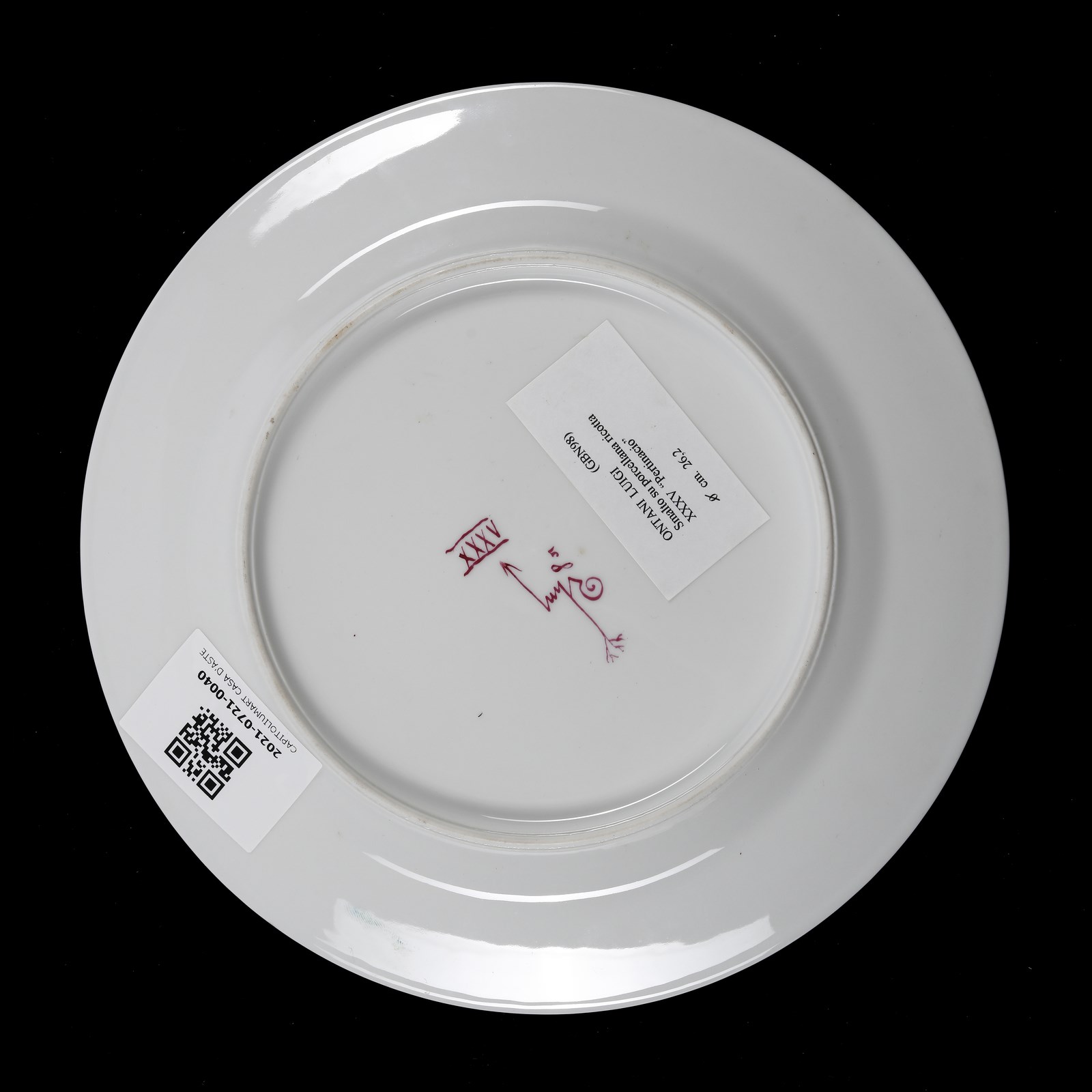 ONTANI LUIGI (n. 1943) Pertinacio. 1985. Piatto in ceramica. Cm 26,00 x 26,00. Esemplare unico. Al retro firma e anno.