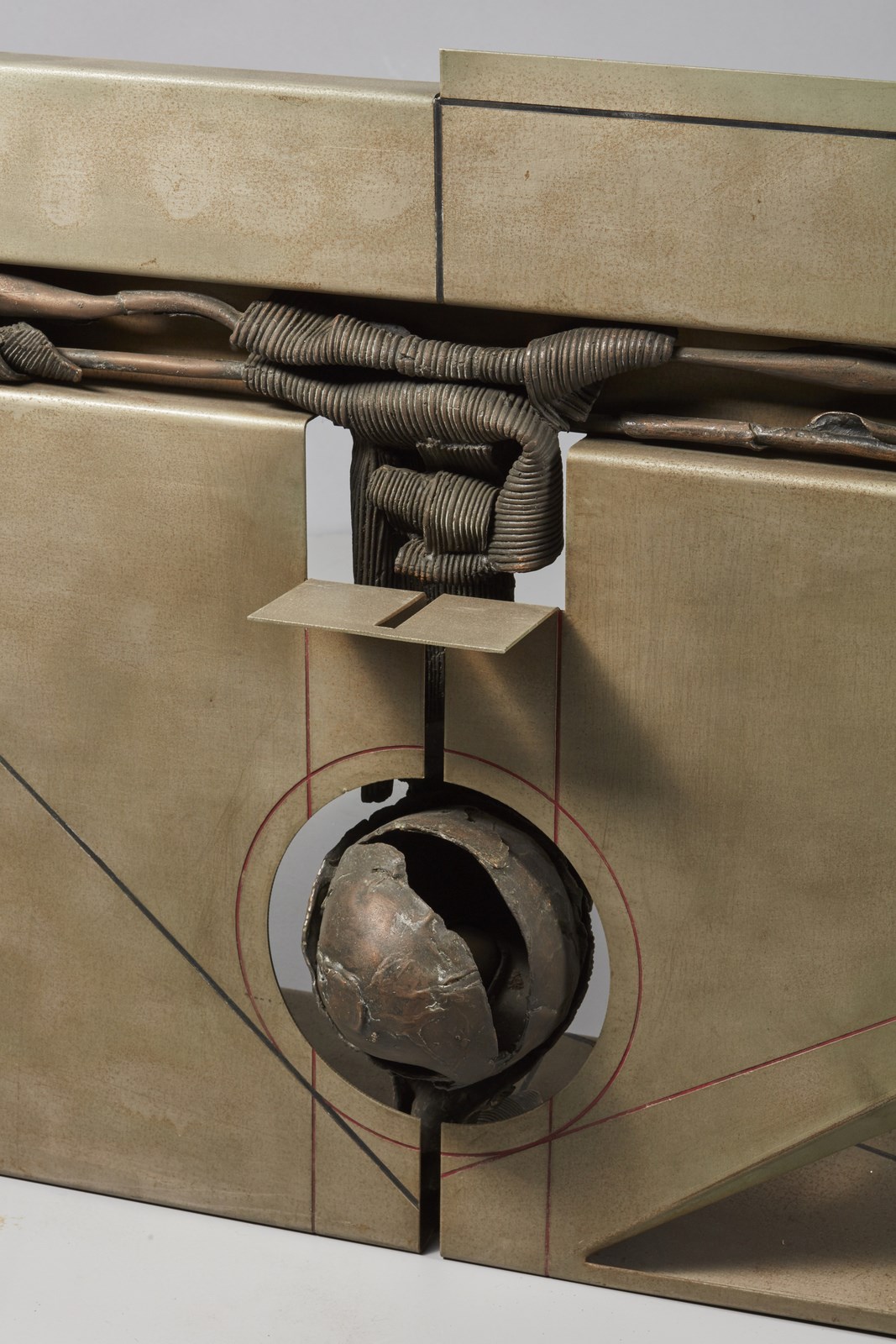 RAMBELLI AMILCARE (1924 - 1976) Progetto abitato 2. 1973. Ferro e bronzo. Cm 106,00 x 65,00 x 25,00. Pubblicazione: Scultura astratta a Milano ricerche plastiche dopo l'informale 1960/1965 a cura di Andrea del Guercio, Edizioni Postumia, Gazoldo degli Oppoliti, Mantova, 24 Maggio -4 Settembre 1997; Palazzo delle stelline, Milano, 10 Novembre -12 Dicembre 1997, pag. 105; Rambelli, Edizione Angolare, Milano, pag.3 -4, con dedica ad personam. (dimensioni errate).