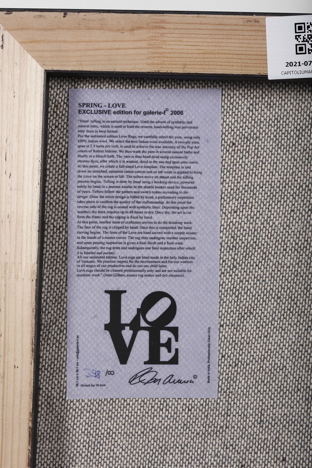INDIANA ROBERT (1928 - 2018) Spring Love. Tappeto. Cm 37,00 x 37,00. Es n.398. Al retro cartiglio descrittivo con tiratura e firma a stampa. Exclusive edition for Galerie- F, 2006. Cornice presente