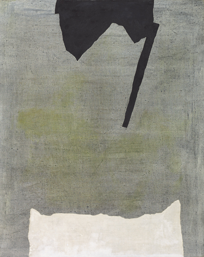 GIUSEPPE SANTOMASO Venezia 26/09/1907 - 24/05/1990  Nero discendente, 1973 olio su tela cm. 92x73, firma, dedica dell'artista ad personam, etichetta della Fundaciò Joan Mirò, Centre d'Estudis d'Art Contemporani (Barcelona), etichetta e timbri della Galleria Campaiola (Roma) al retro, timbro e firma per autenticità e provenienza dello Studio d'Arte Campaiola (Roma) su foto, pubblicato su "Santomaso, catalogue raisonné, 1931-1974", Edizioni Alfieri, al n° 652.