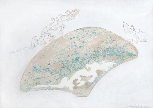 EZIO GRIBAUDO Torino 10/01/1929  Lino, 1982 tecnica mista su carta Buvard cm. 44x60, firma in basso a destra, etichetta dell'artista al retro.