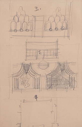 FORTUNATO DEPERO Fondo (Tn) 30/03/1892 - Rovereto (Tn) 29/09/1960 Costruzione del Museo Depero (Studio degli interni 3), 1952/53 ca. matita su carta cm. 23,5x15,9; opera non firmata, opera registrata presso l'Archivio Unico per il Catalogo delle Opere Futuriste di Fortunato Depero come da attestazione di avvenuta archiviazione di Maurizio Scudiero allegata.