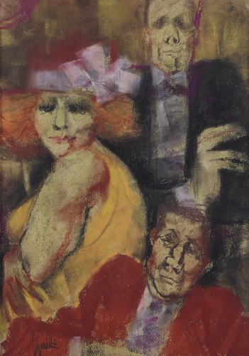 REMO SQUILLANTINI Stia (Ar) 1920 - Firenze 06/08/1996 Donna con cappello, anni'90 tecnica mista su carta cm. 50x35, firma in basso a sinistra, dichiarazione d'autenticità degli eredi Paola e Riccardo Squillantini su foto.