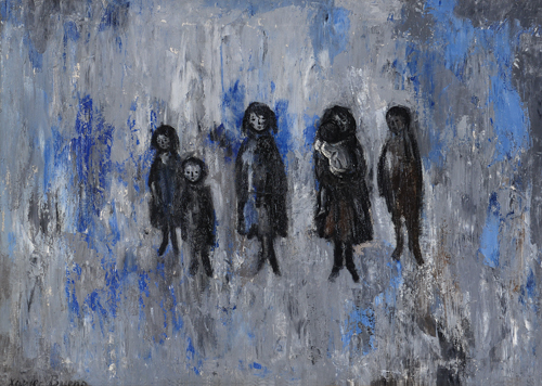 XAVIER BUENO Vera De Bidasoa (Spagna) 1915 - Fiesole (Fi) 17/07/1979 Bambini olio su tela cm. 50x70, firma in basso a sinistra, dichiarazione d'autenticità del figlio Raffaele su foto.