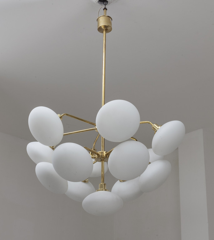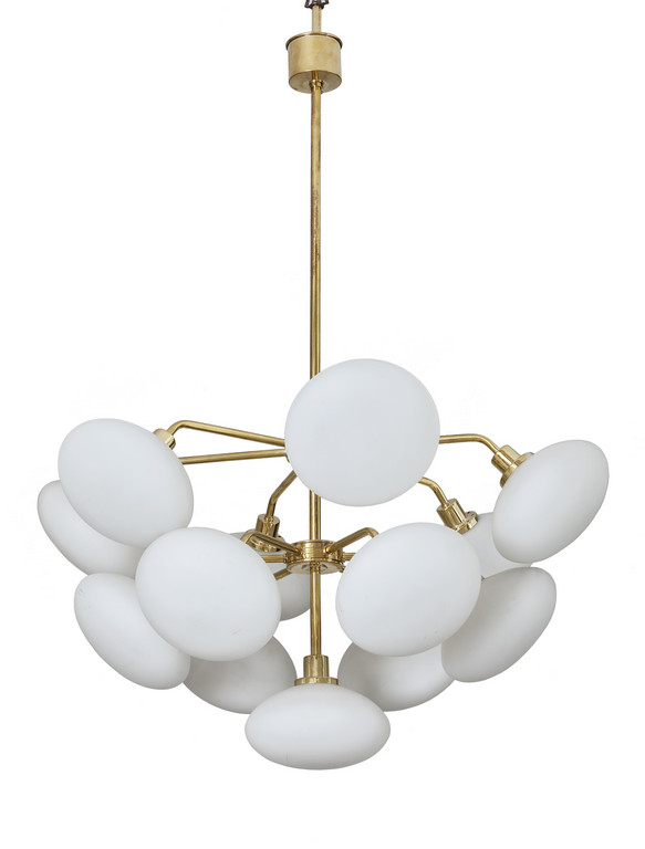 Lot 3165 | UN LAMPADARIO, anni '60. <br>Ottone, vetro