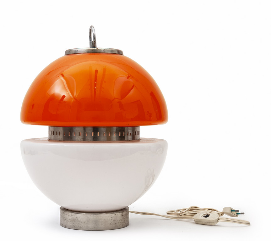 Ottone nichelato, vetro opalino, vetro incamiciato.