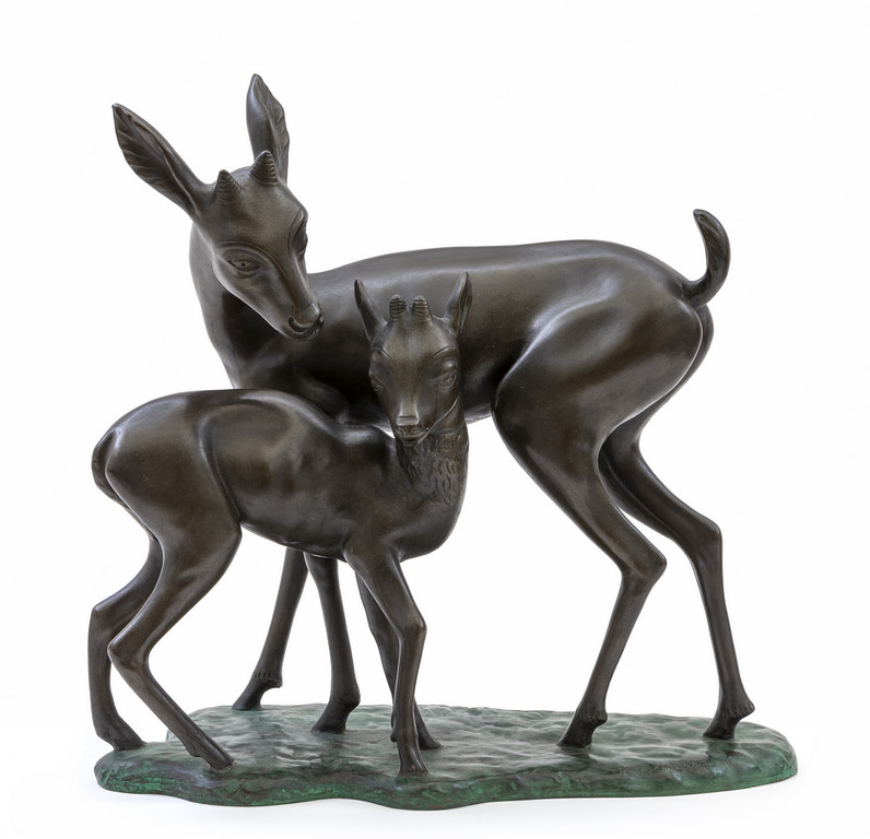 Una scultura in ceramica con due cerbiatti, anni "30.