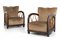 DUE POLTRONE, anni "50. <br>Legno di noce, parti