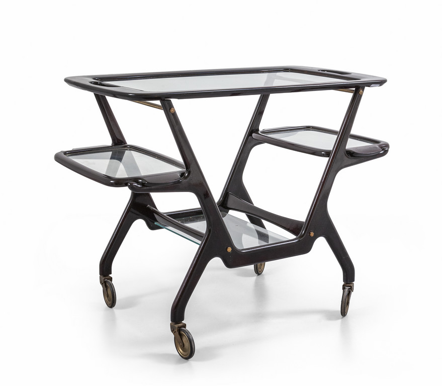 UN CARRELLO, anni '50. <br>Legno di mogano,