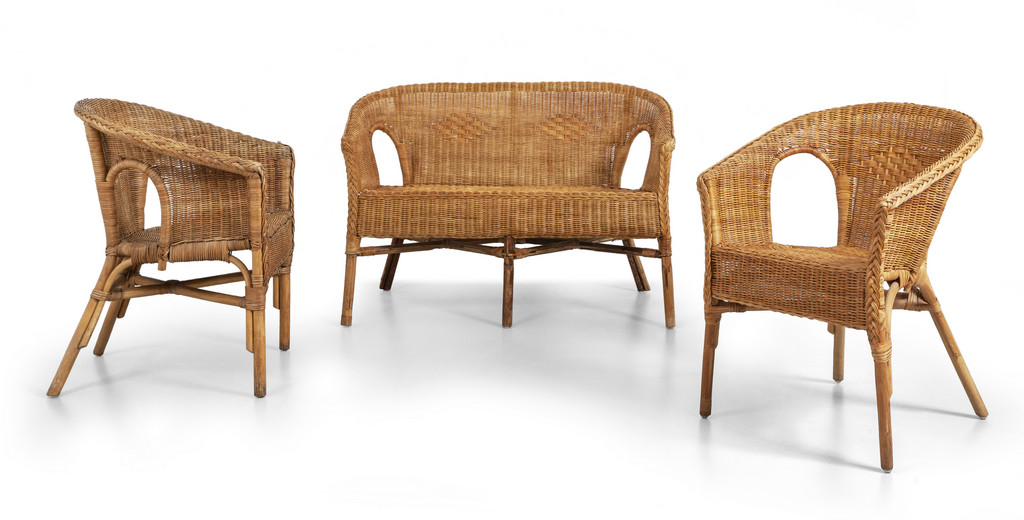 Lot 3427 | DUE POLTRONE e UN DIVANO, anni '60. <br>Malacca,