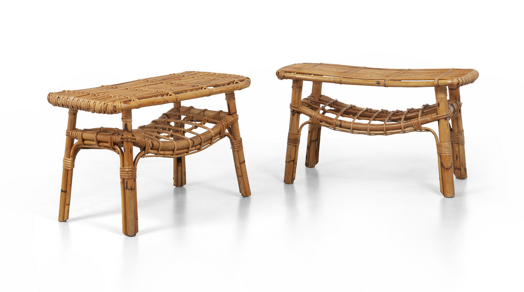 DUE PANCHETTE, anni "60. <br>Malacca, giunco e