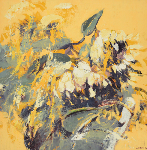 GIANCARLO CAZZANIGA Monza (Mi) 20/09/1930 Estate olio su tela cm. 70x70, firma in basso a destra, titolo e firma al retro, opera registrata presso l'Archivio delle opere di Giancarlo Cazzaniga a cura della Galleria Palmieri Arte come da dichiarazione su foto.