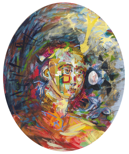 BRUNO CECCOBELLI Montecastello Vibio (Pg) 02/09/1952 L'uovo di Maria, 1995 tecnica mista, collage ed inserto di piatto in plastica su tela ovale cm. 60x40, firma, titolo e anno al retro, opera registrata presso l'Archivio Ceccobelli come da dichiarazione su foto, certificato d'autenticità della Elite Shopping (MI) allegato.