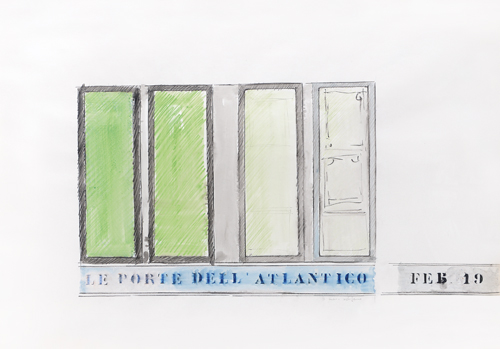 TANO FESTA Roma 02/11/1938 - Roma 09/01/1988 Le porte dell'Atlantico, 1962 tecnica mista su carta cm. 70x100, firma e anno in basso a destra, dedica a Mario Schifano al centro, opera registrata presso l'Archivio delle Opere di Tano Festa a cura dello Studio Soligo (Roma) come da dichiarazione su foto.