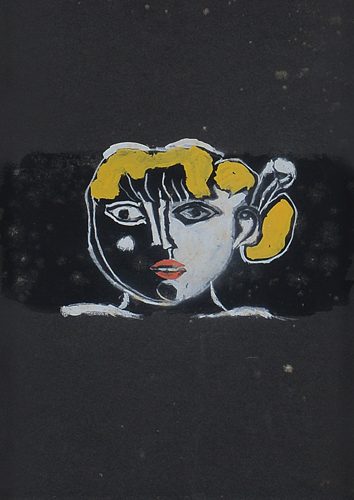 FRANCO GENTILINI Faenza (Ra) 04/08/1909 - Roma 05/04/1981 Testa di ragazza, 1957 tecnica mista su cartoncino nero cm. 35x25, firma, titolo e anno al retro, realizzata per il volume "Garcia Lorca", dichiarazione d'autenticità dell'Archivio Franco Gentilini a cura della signora Luciana Gentilini su foto.