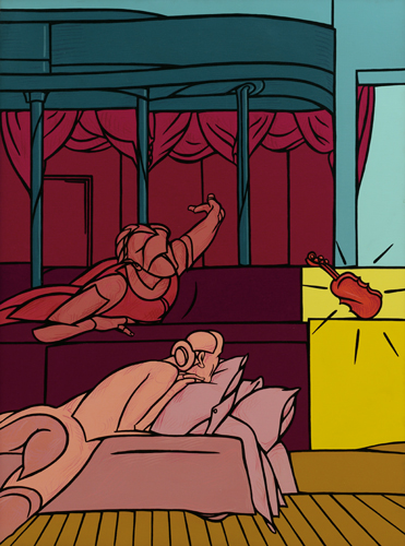 VALERIO ADAMI Bologna 17/03/1935 Teatro! Teatro!, (1988) acrilico su tela cm. 130x97, firma, titolo ed etichette della Edward Totah Gallery (London) al retro, dichiarazione d'autenticità dell'artista su foto.