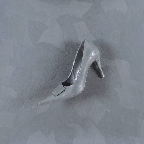 NURA O’LARA Beirut (Libano) 1972 Nozze d'argento, 2006 tecnica mista e applicazioni su pannello in legno cm. 50x50, firma, etichetta e timbri della Galleria Oprandi (Clusone-BG) al retro, dichiarazione d'autenticità dell'artista ed etichetta della Galleria Oprandi (Clusone-BG) su foto, entro teca in plexiglass.
