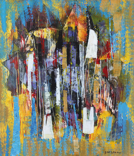 ELVIO ZORZENON Aquileia 1939 Emozioni tecnica mista su tela cm. 70x60, firma in basso a destra, titolo, firma e tecnica al retro, dichiarazione d'autenticità dell'artista su foto.