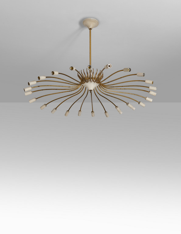 UN LAMPADARIO, anni "50. <br>Ottone, alluminio
