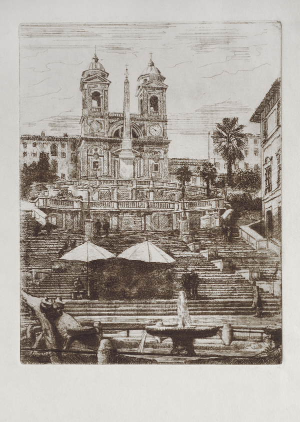 Anonimo del XX sec. LA SCALINATA DI PIAZZA DI SPAGNA Acquaforte, mm. 495x340 (foglio); mm. 255x195 (lastra)