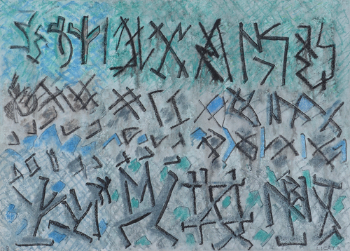 RICCARDO LICATA Torino 20/12/1929 Senza titolo, 2008 tecnica mista su tela cm. 50x70, firma in basso a destra, anno in basso a sinistra, dichiarazione d'autenticità dell'artista su foto.