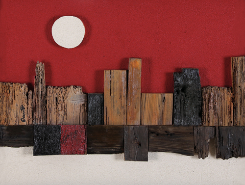 PIERLUIGI DE LUTTI Monfalcone 1959 Città allo specchio tecnica mista su tavola cm. 60x80, firma in basso a sinistra, titolo e firma al retro, dichiarazione d'autenticità dell'artista su foto.
