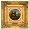 Capricci con rovine e contadini Artista fiammingo attivo in Italia nel XVII secolo coppia di dipinti, in cornici dorate, olio su tavoletta, diam cm 12