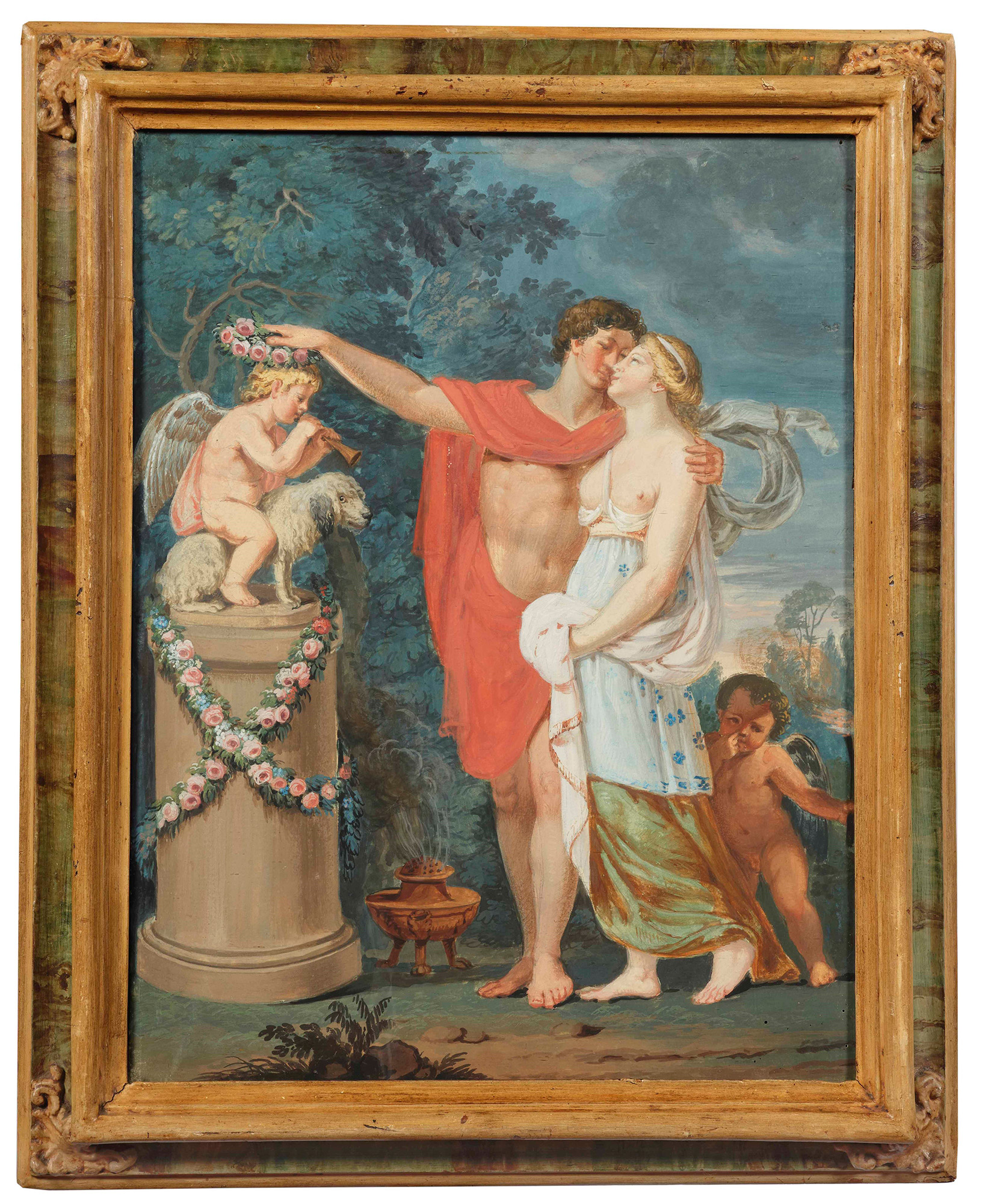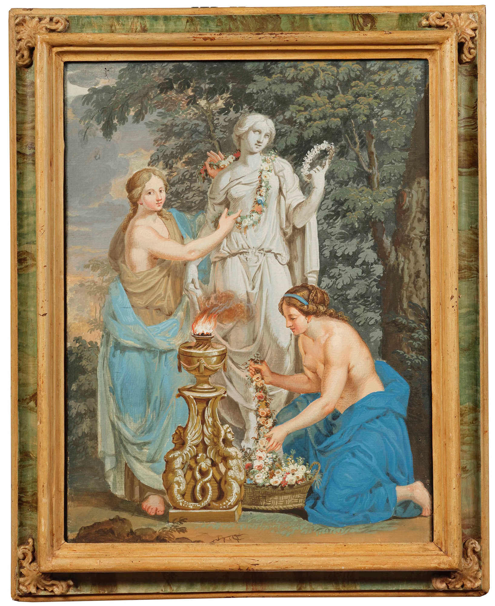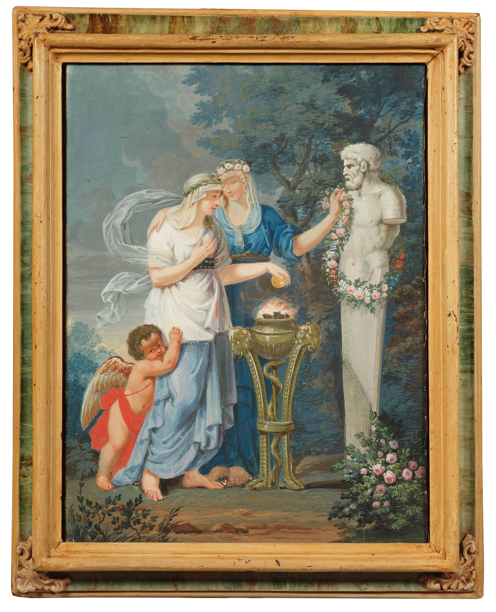Josuè Sala, Scene di offerta e sacrificio agli dei quattro dipinti, Uno dei dipinti presenta sul telaio l'iscrizione "Josuè Sala Mediolanensis Pinxit anno MDCCLXXXXVI", tempera su carta riportata su tela, W. 325 - H. 430 mm, Prof. Fernando Mazzocca, Paolo Antonacci antichità, Roma, "(...) In questo caso le opere in esame rappresentano un'importante aggiunta, anche per la presenza della scritta coeva, alla conoscenza di un pittore ancora poco noto e di cui si hanno scarse notizie biografiche., (...) Il Sala è noto soprattutto per la serie di ritratti dei benefattori, tutti documentati e datati, eseguiti tra il 1802 e il 1803, per l'Ospedale Maggiore di Milano. Ma si conoscono anche due grandi pale d'altare, entrambe firmate e datate 1799 (dove l'artista si definisce come nella scritta apposta alle nostre tempere 'mediolanensis'), eseguite per la chiesa di Santa Maria Assunta a Bergamo. (...)"
