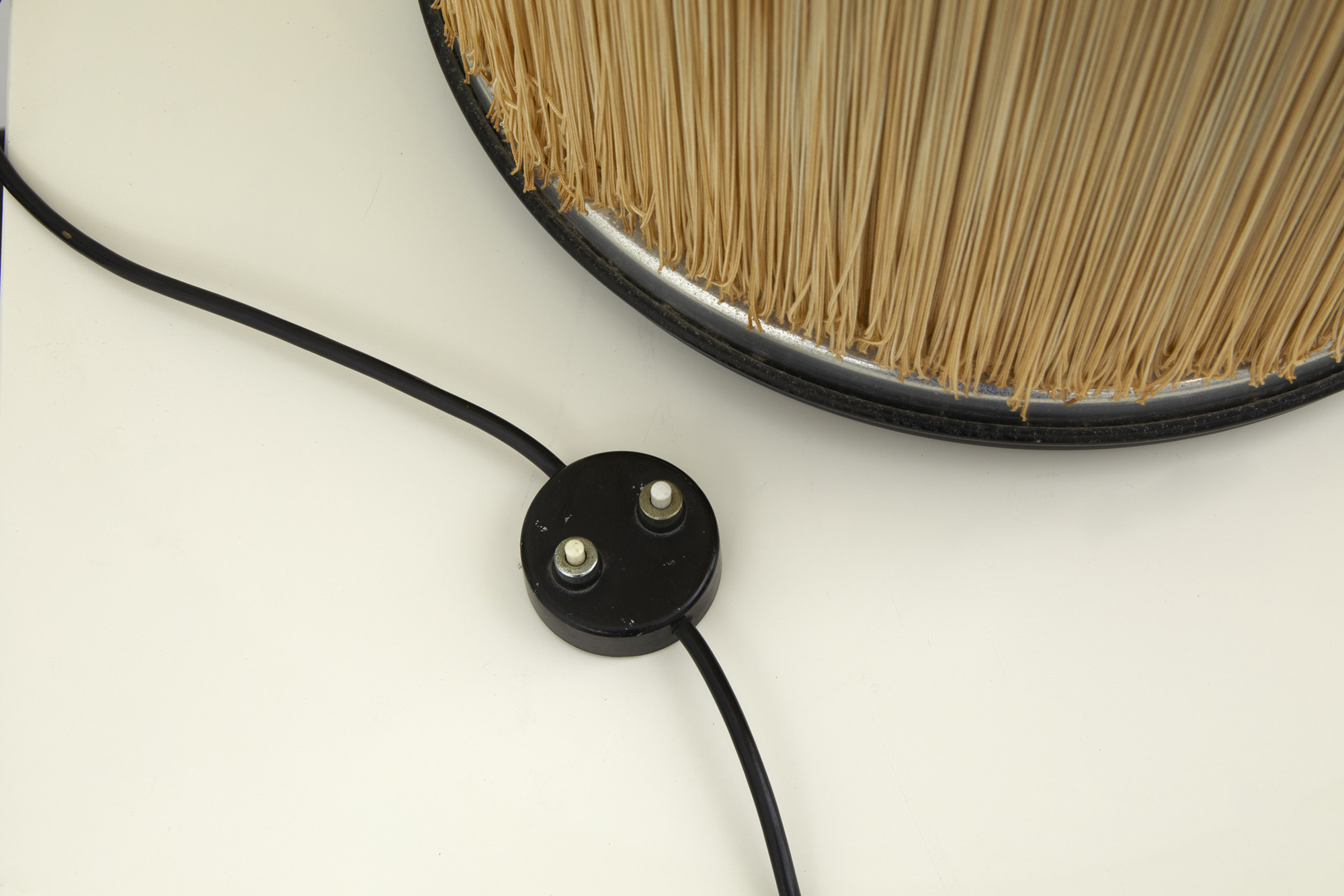 Lampada da tavolo "mod. 597" in alluminio laccato con frangia in ràyon.
