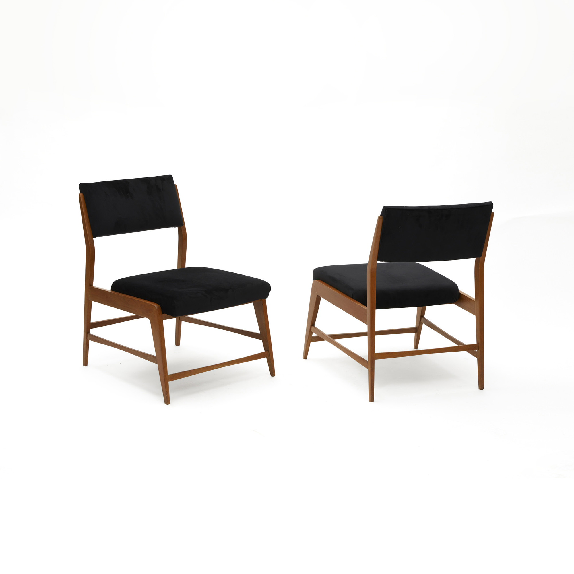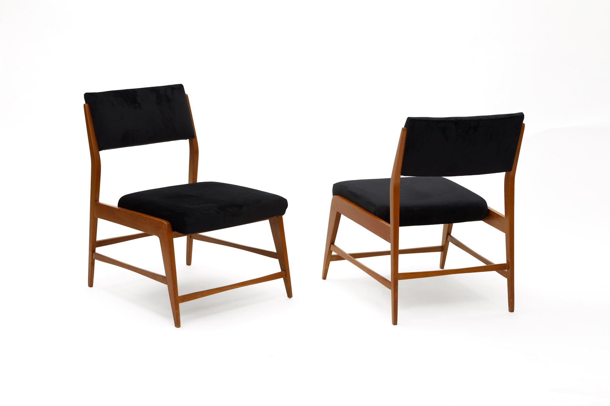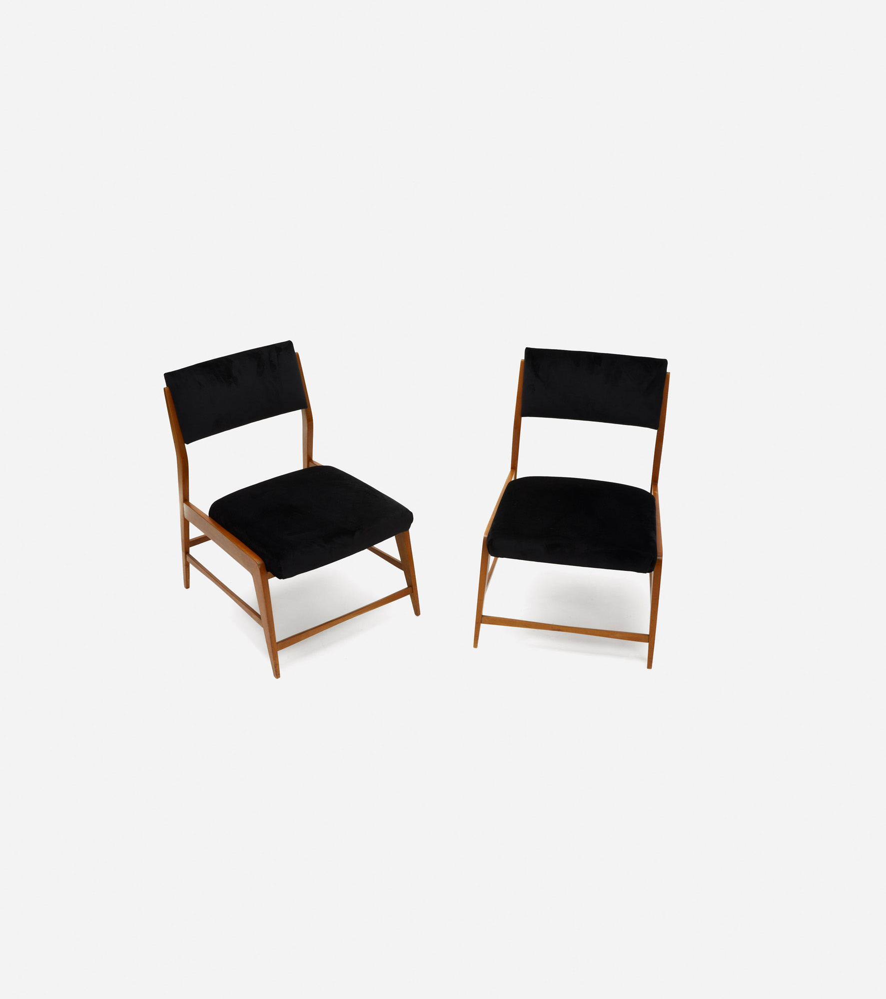 La seduta e lo schienale sono interamente imbottiti e rivestiti in velluto nero.