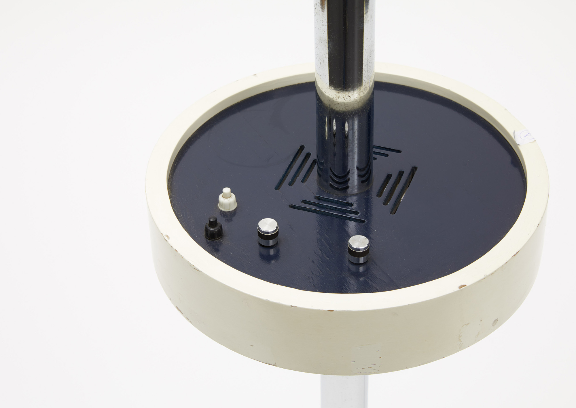 La radio (non funzionante) è posta nella parte centrale della piantana; il diffusore con proiezione verso l'alto di luci colorate alternate, viene azionato da un doppio pulsante.