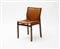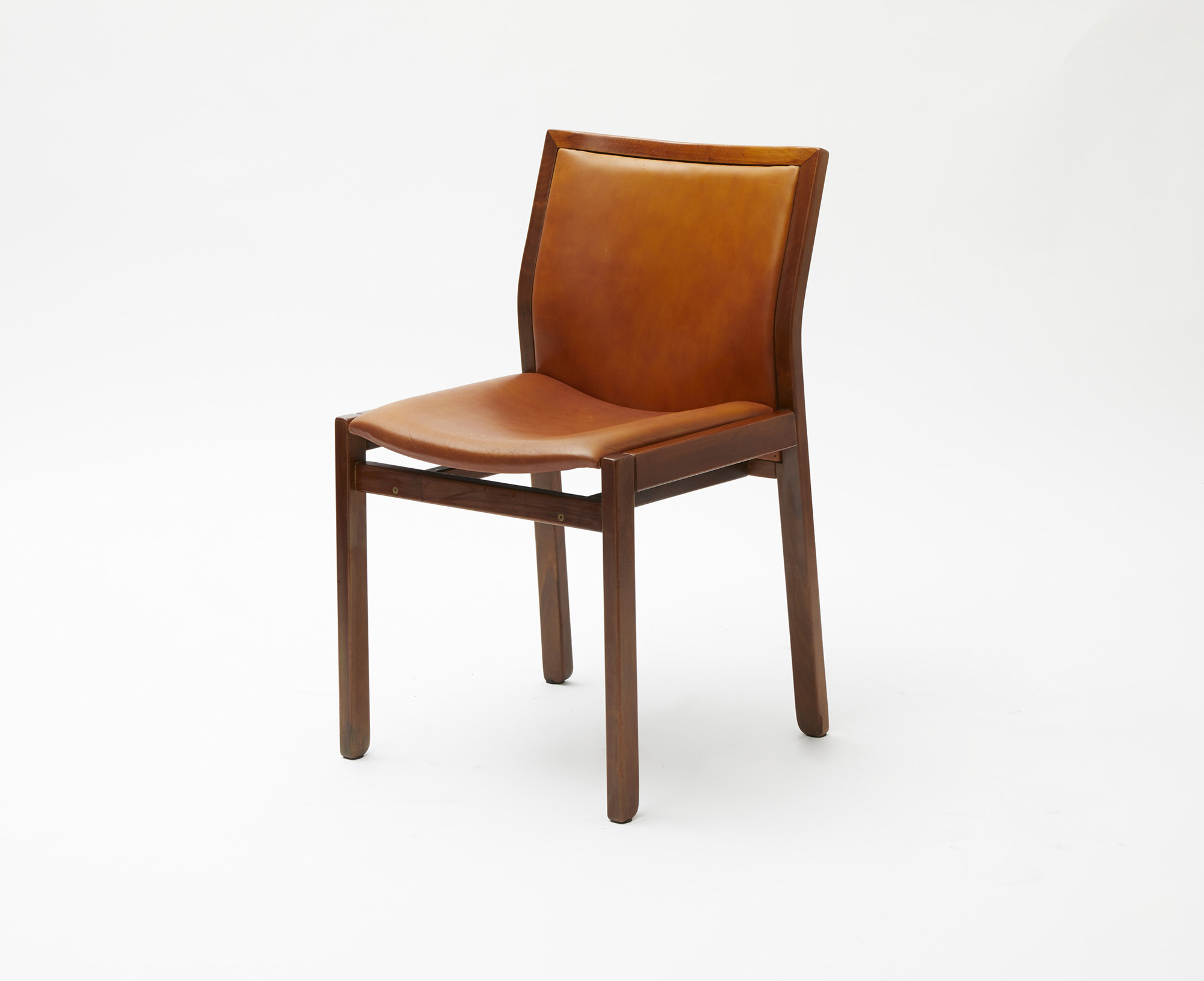 La sedia presenta seduta e schienale rivestiti in pelle.