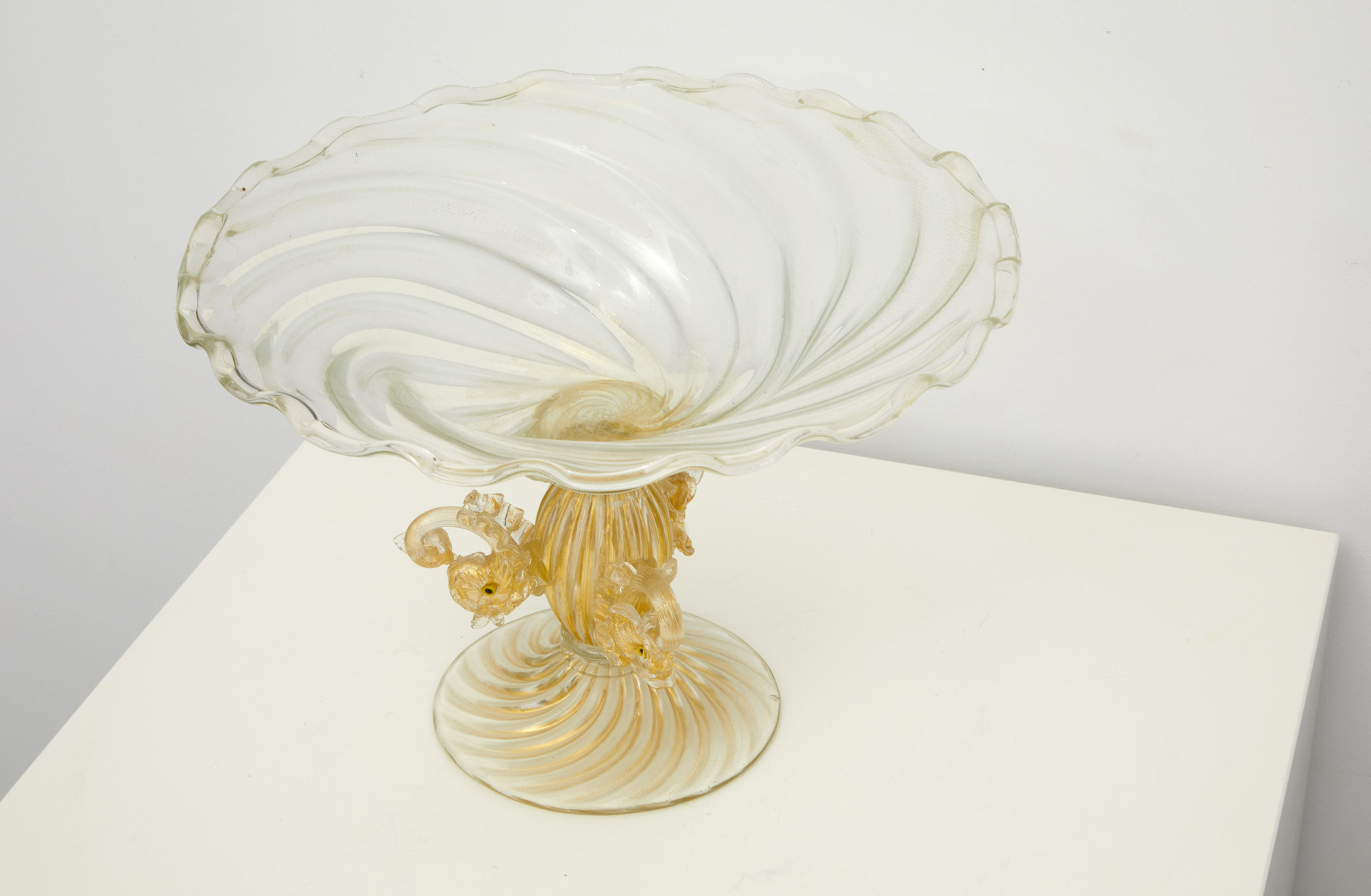 Set di tre pezzi in vetro trasparente con inclusioni in polvere d'oro.