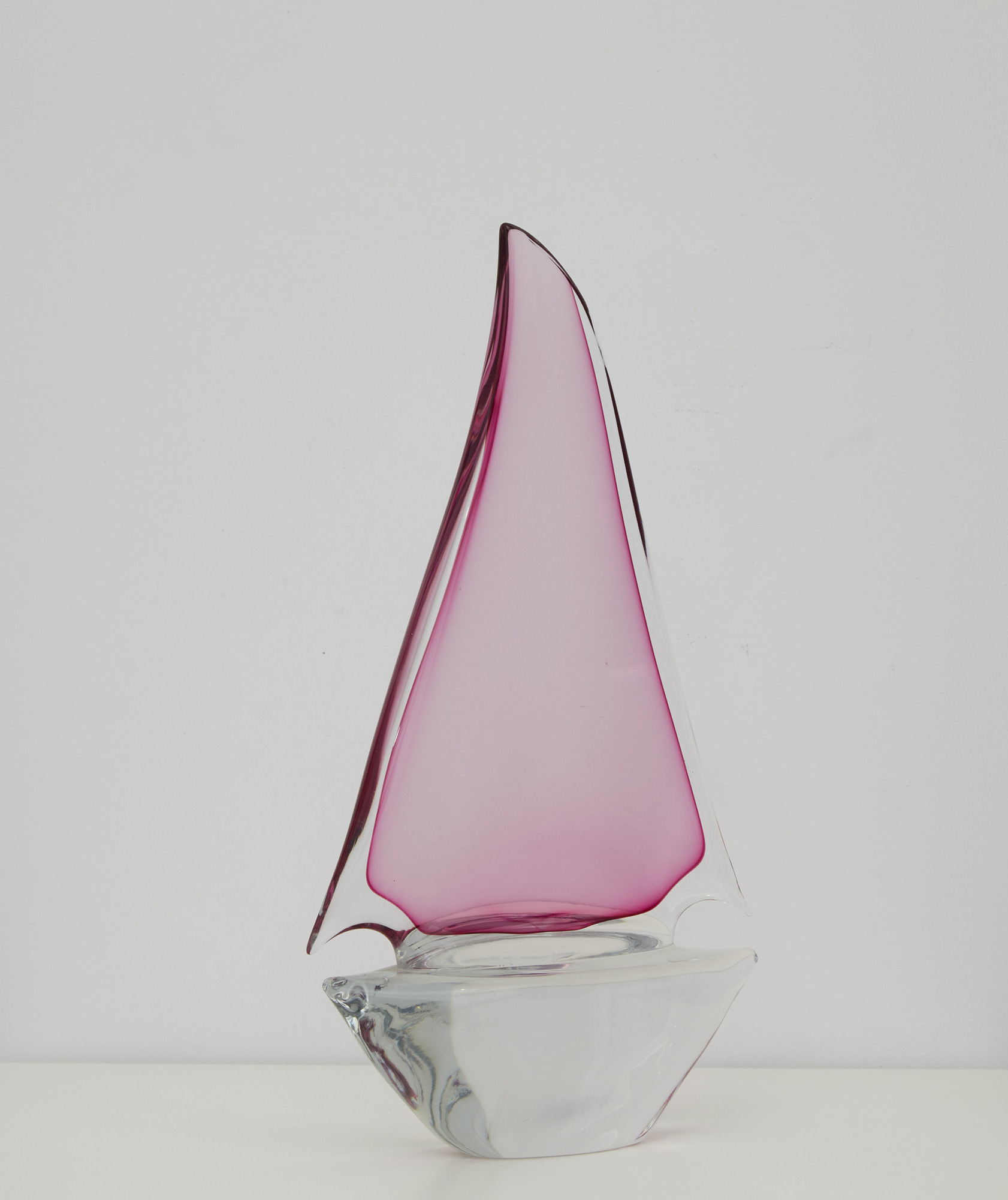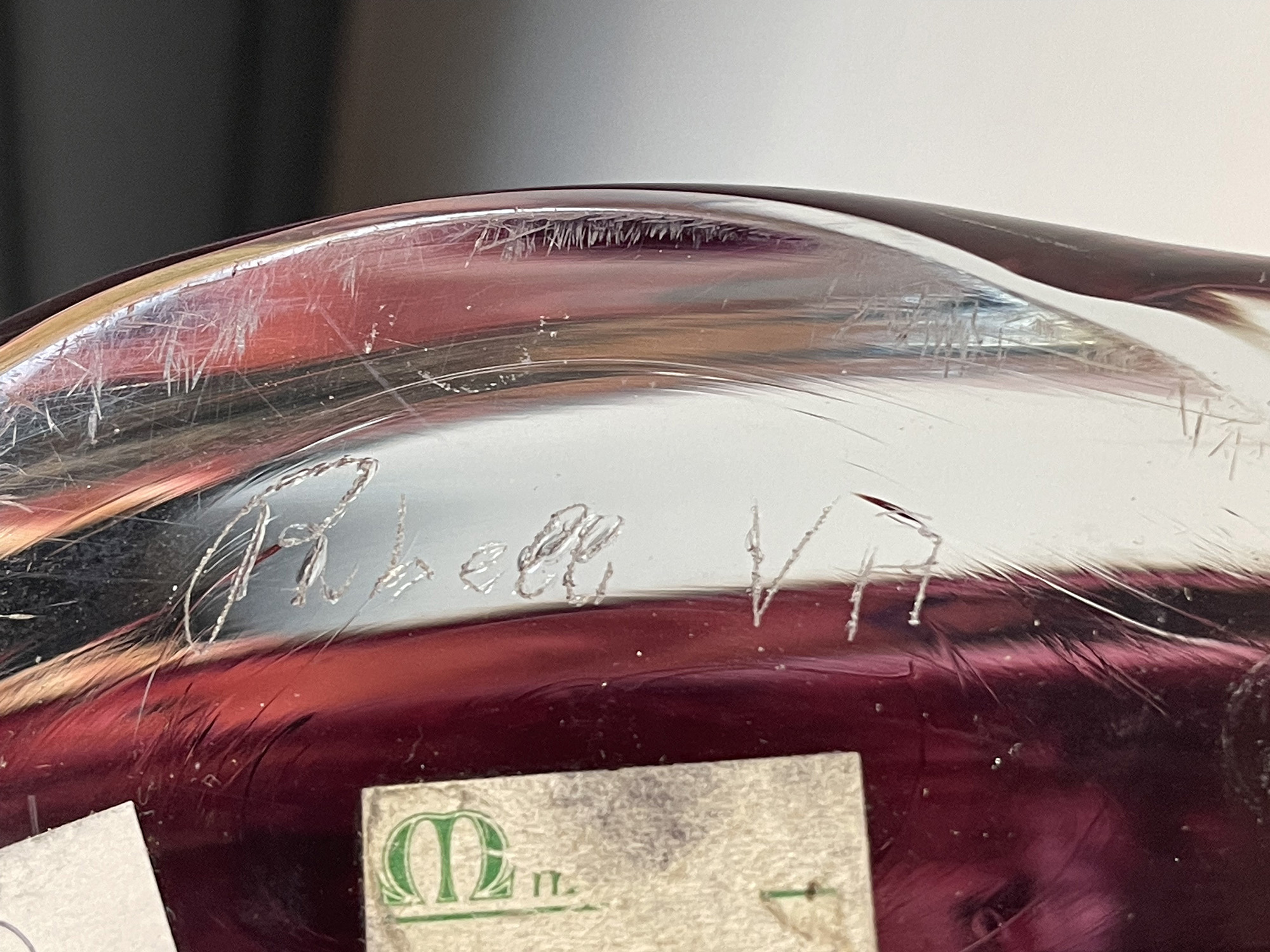 Scultura in vetro sommerso nei toni ametista realizzata da Rubelli V.A.