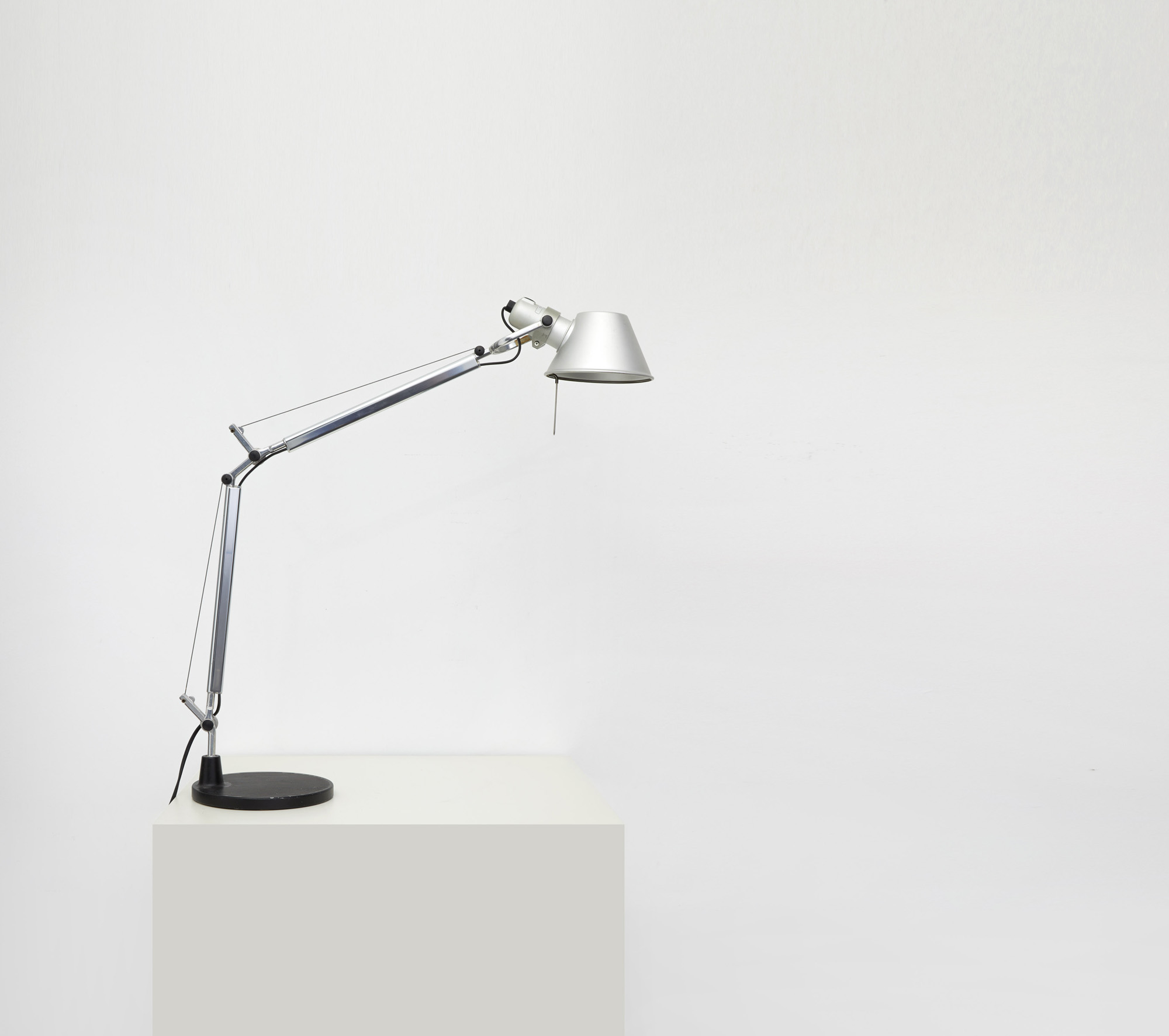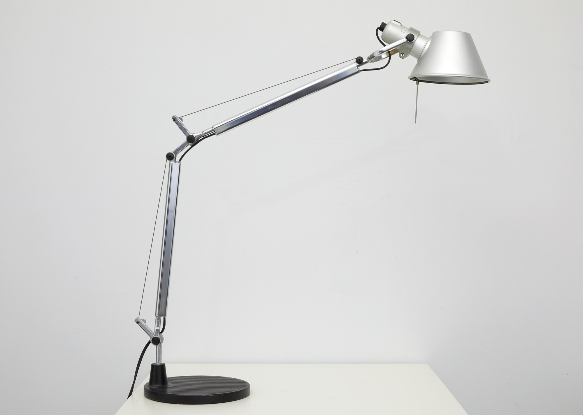 Lampada da tavolo, modello "Tolomeo mini", base con struttura a bracci mobili in alluminio lucidato e diffusore in alluminio opaco.