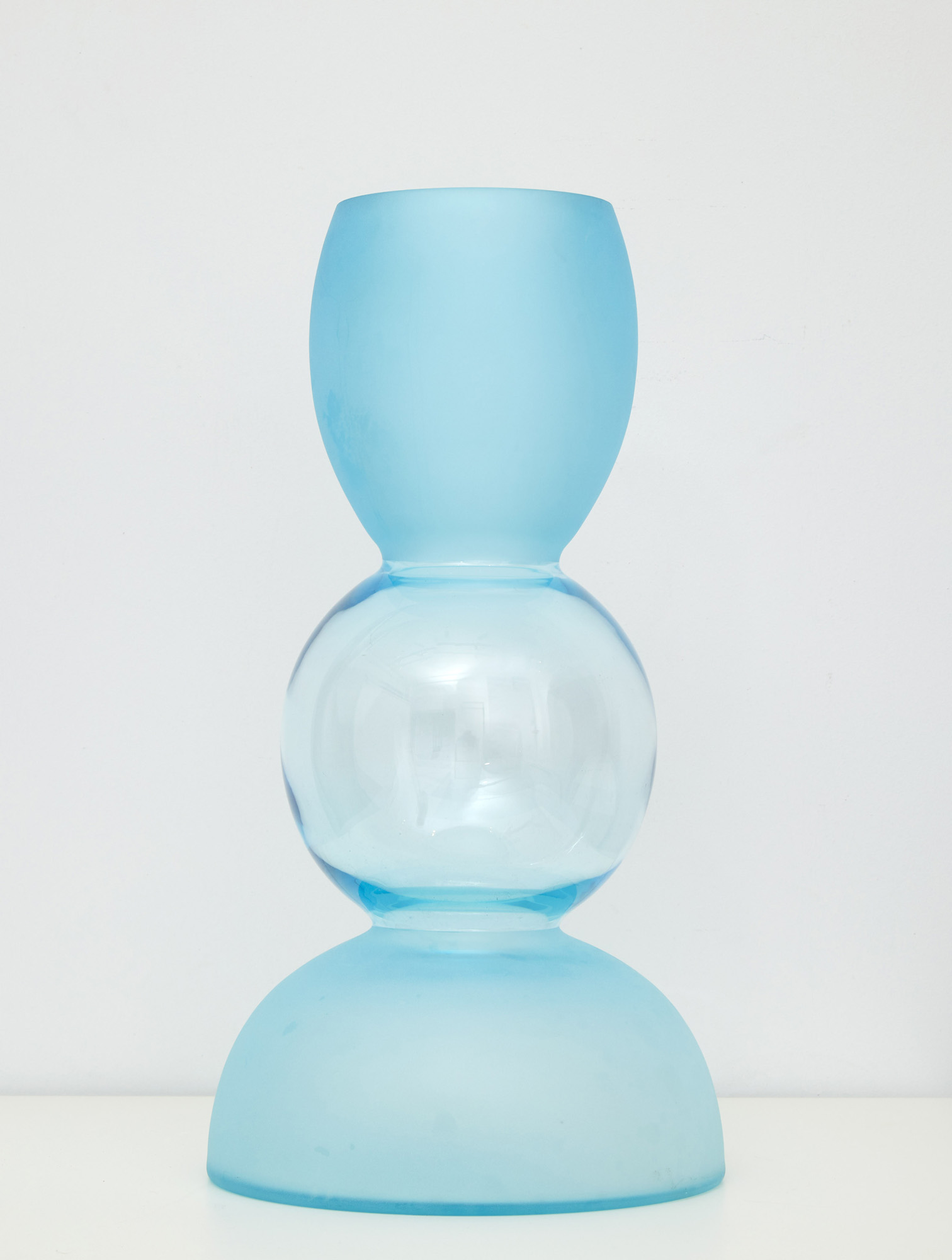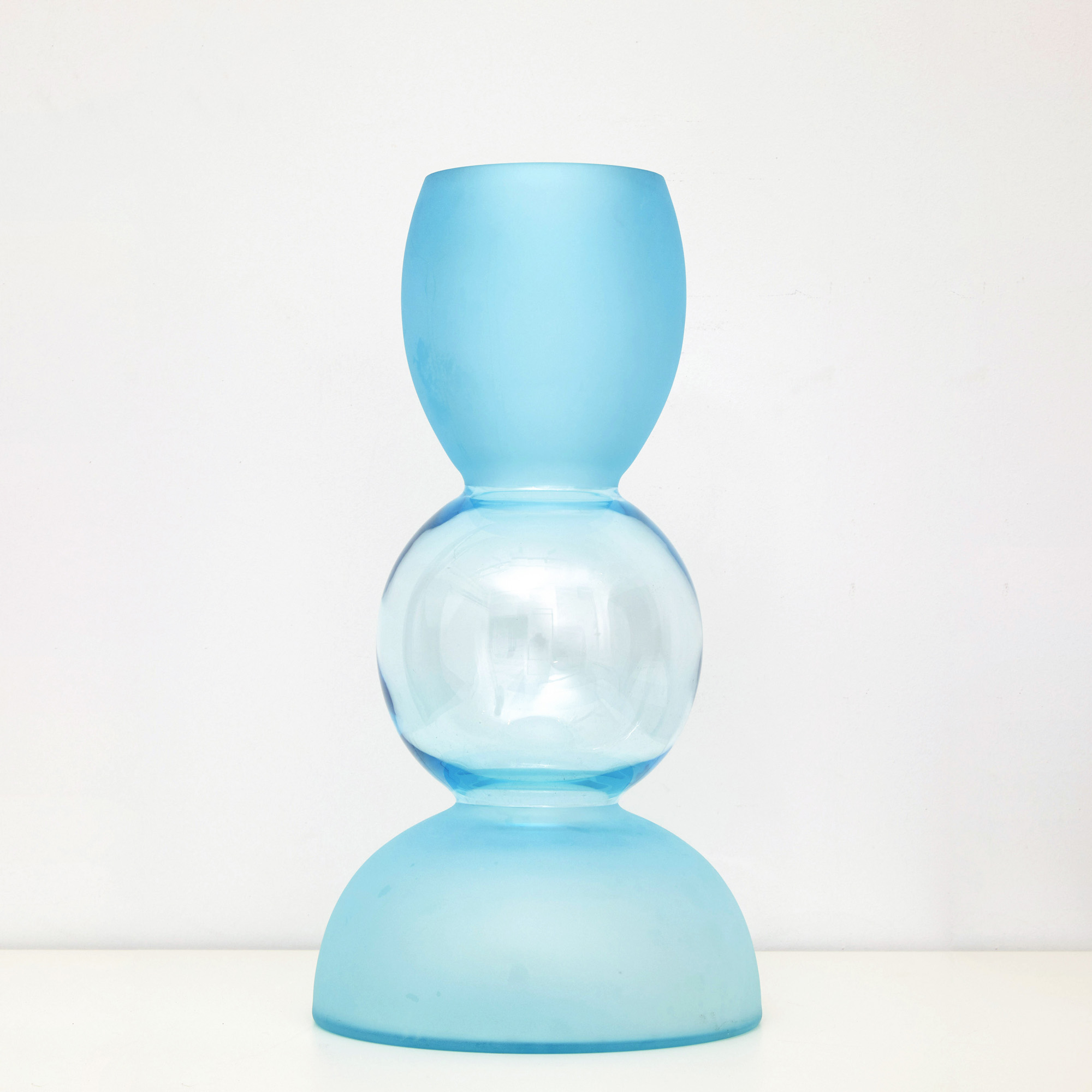 Vaso in vetro di colore azzurro costituito da tre corpi, realizzato da Barovier & Toso.