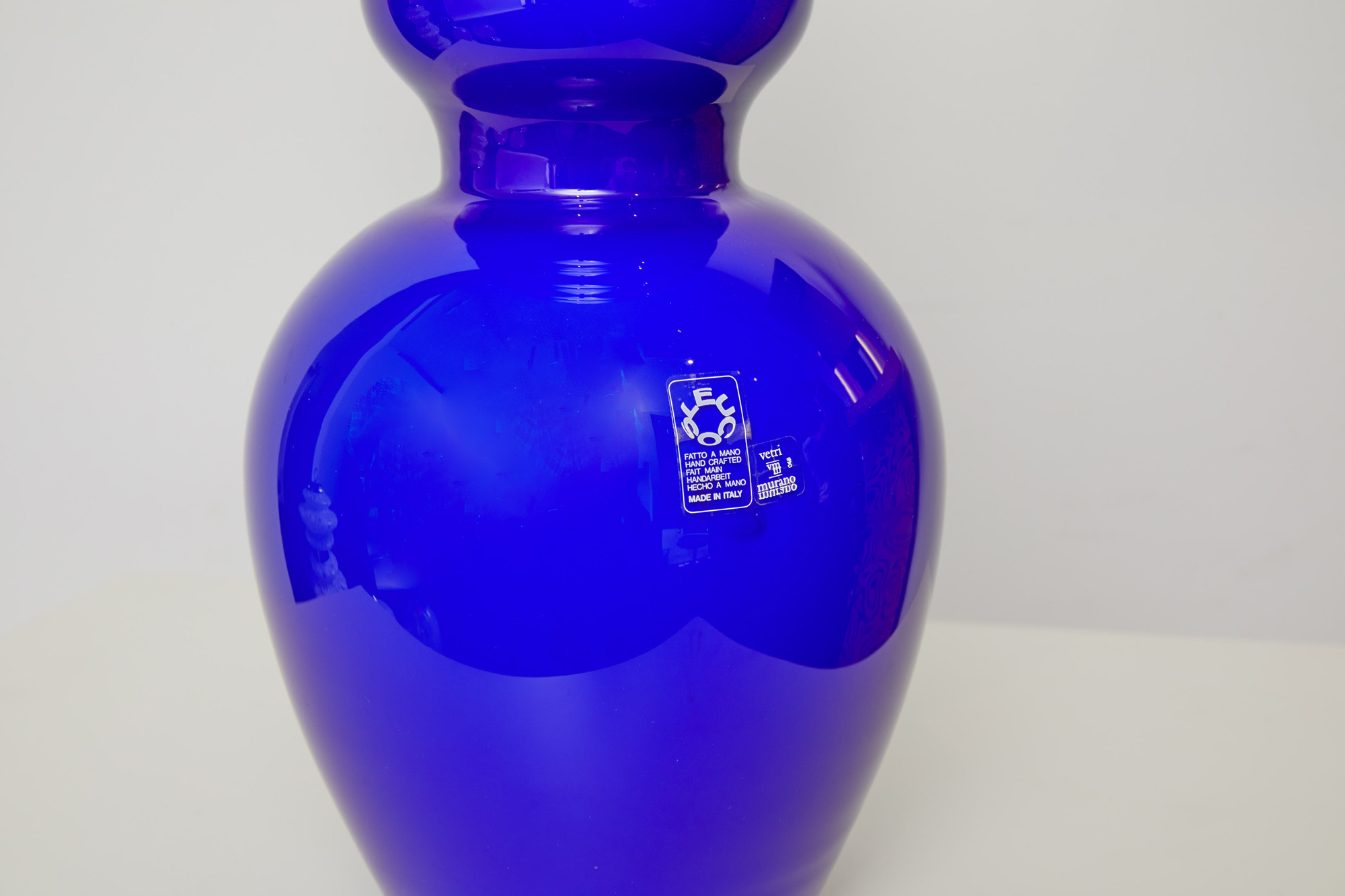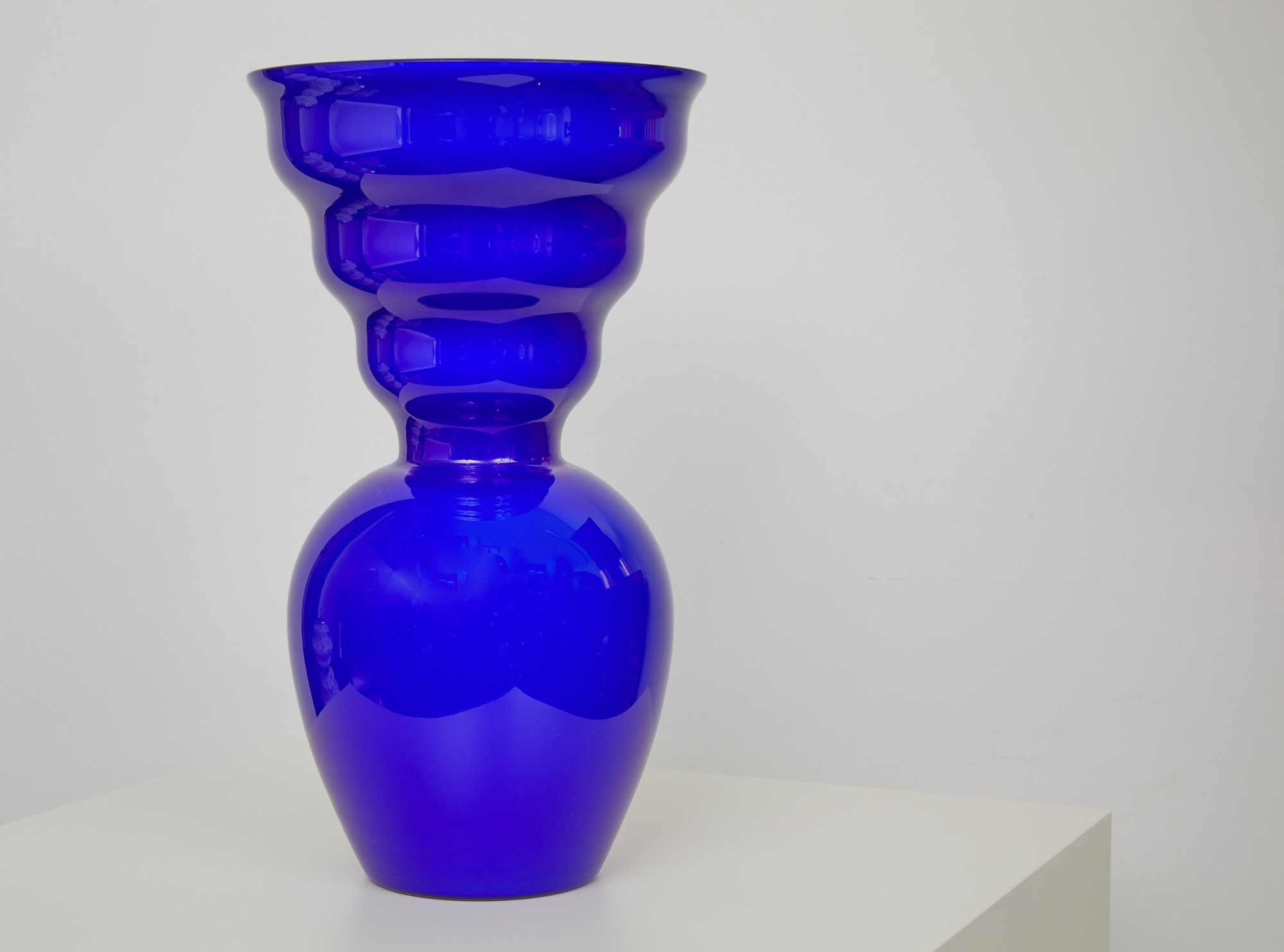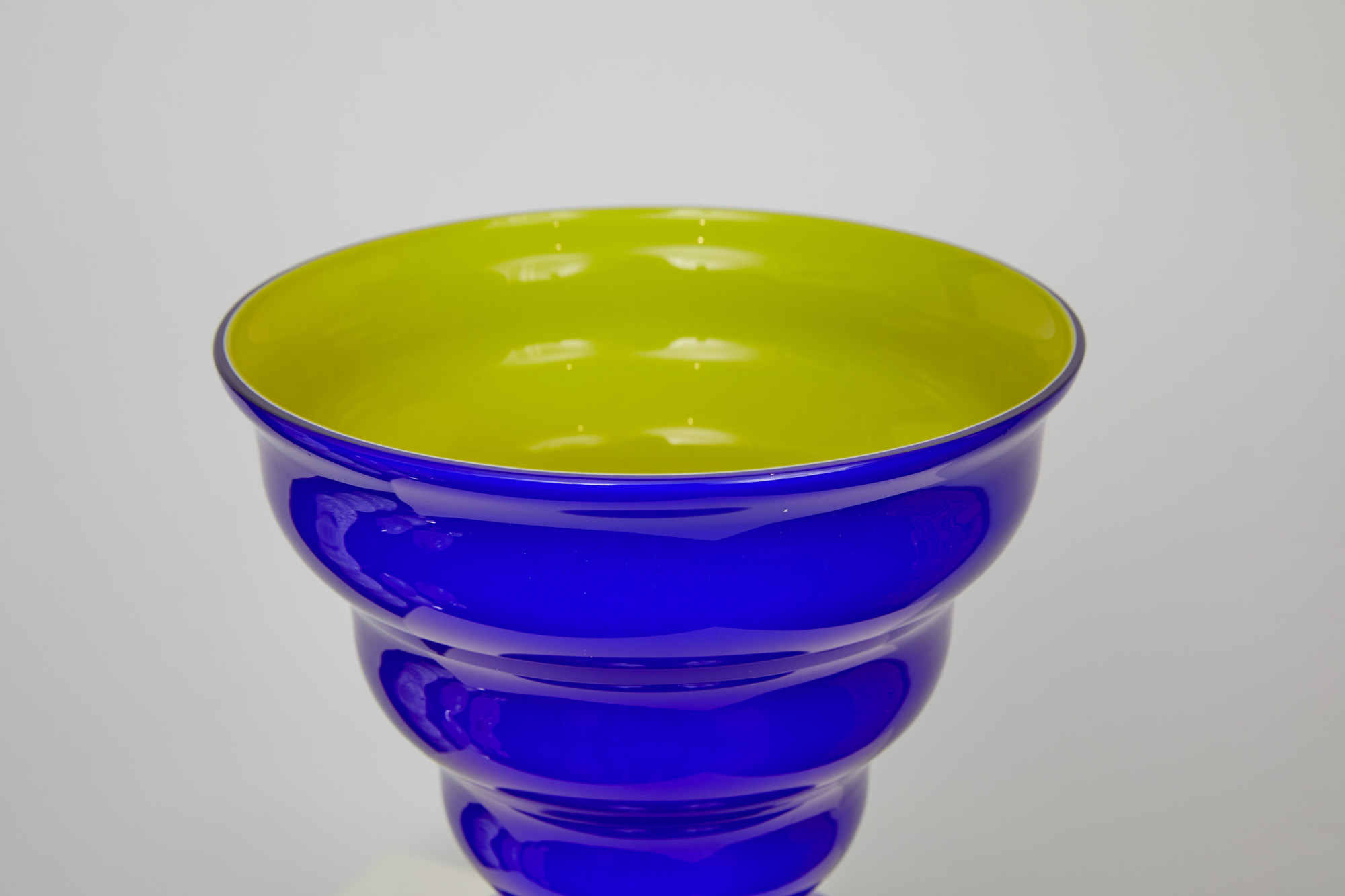 Vaso in vetro incamiciato nei toni del blu e del giallo lime realizzato da Leucos vetri di Murano.