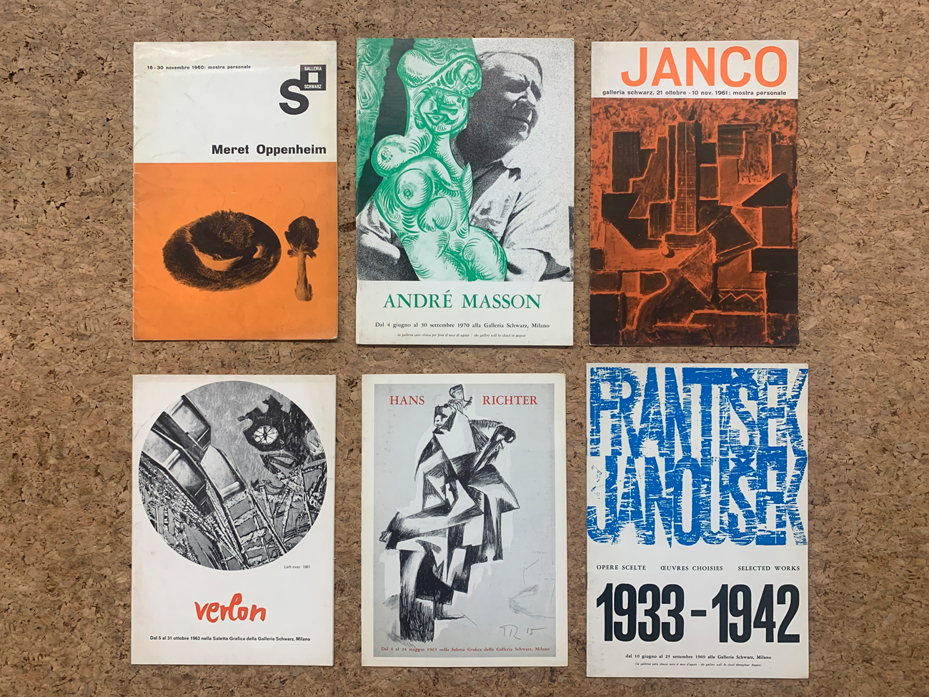GALLERIA SCHWARZ, MILANO - Lotto unico di 5 rari cataloghi e un pieghevole editi dalla Galleria