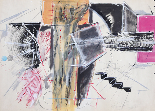 AMILCARE RAMBELLI Milano 21/08/1924 - Milano 29/01/1976  Appunti di diario sull'occupazione dell'Accademia di Belle Arti, 1971 tecnica mista su carta cm. 49x69, firma e anno in basso al centro, titolo in basso a destra.