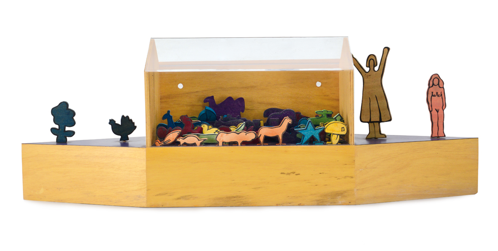 UGO NESPOLO Mosso Santa Maria (Bi) 29/08/1941  Arca di Noè, 1973 oggetto scomponibile, 40 elementi in legno e plexiglass cm. 39x112x29,5; esemplare 20/99, firma, anno, tiratura e timbro dell'artista sul retro, certificato di autenticità allegato.