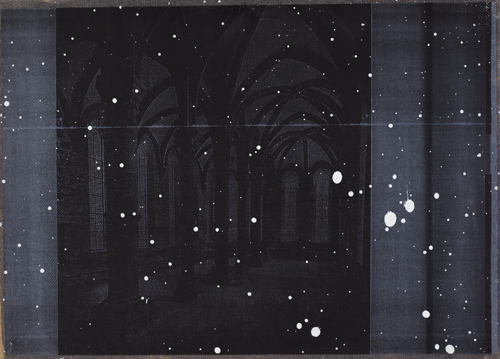 LUCA PIGNATELLI Milano 22/06/1962 Attesa, 2002 tecnica mista su carta applicata su tela cm. 31x43, firma e anno al retro, dichiarazione d'autenticità dell'artista su foto, pubblicato sul catalogo "Luca Pignatelli, Italia" a cura di Danilo Eccher, Edizioni Charta, pagina 83 e 85, opera priva di cornice.