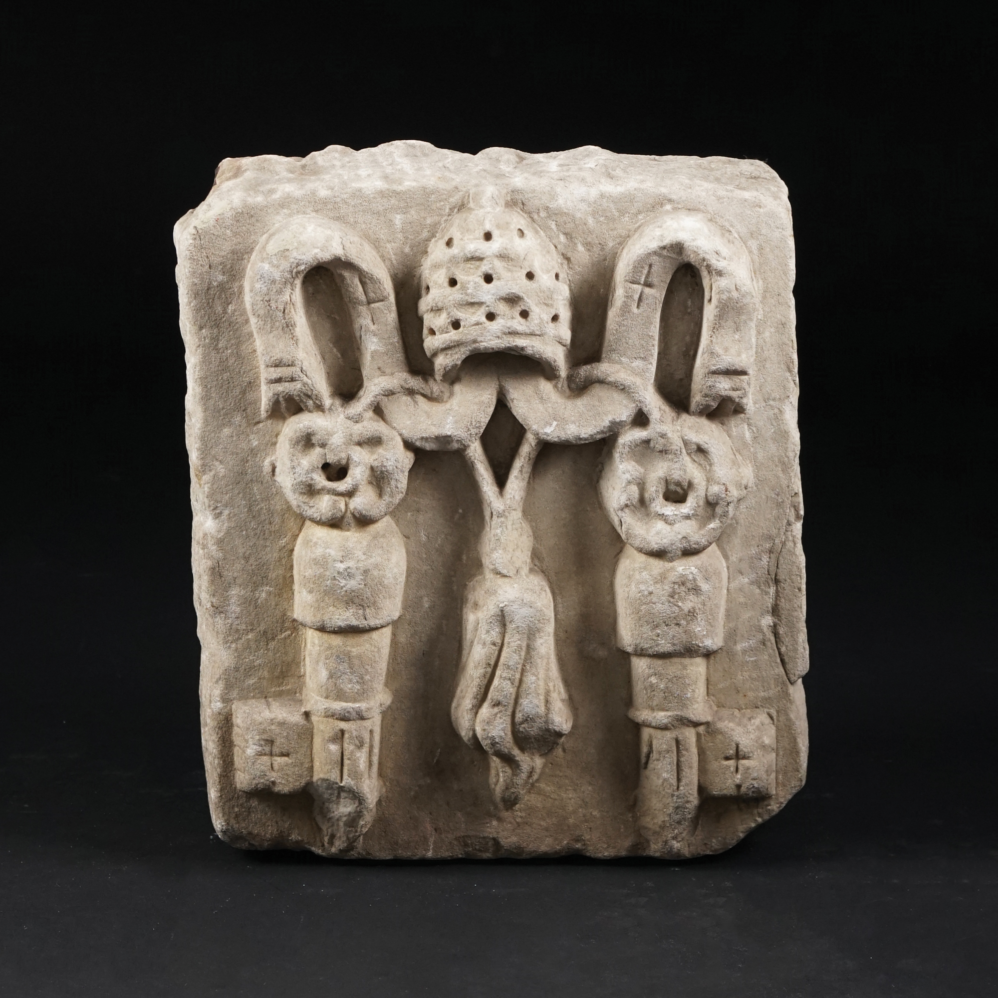 Lot 5 | Frammento in marmo bianco scolpito a raffigurare uno stemma papale. XVIII...