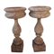 Coppia di acquasantiere in marmo rosso di Verona. Vasca circolare su montante a balaustro poggiante su base quadrata, cm. 117x54.