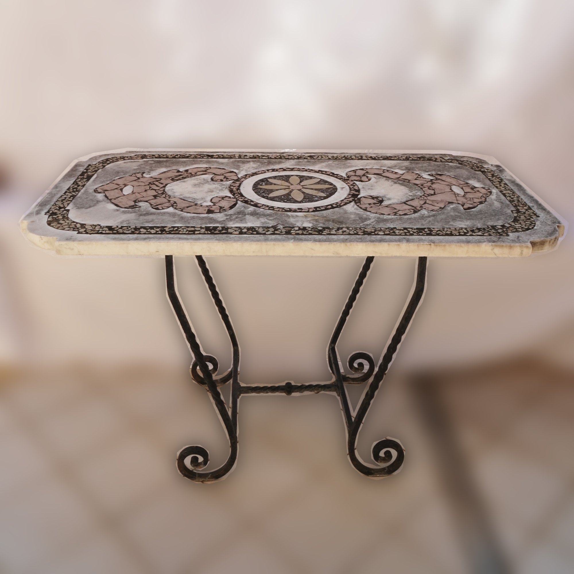 Lot 9 | Tavolo con piano rettangolare intarsiato in marmi policromi; sostegni in...