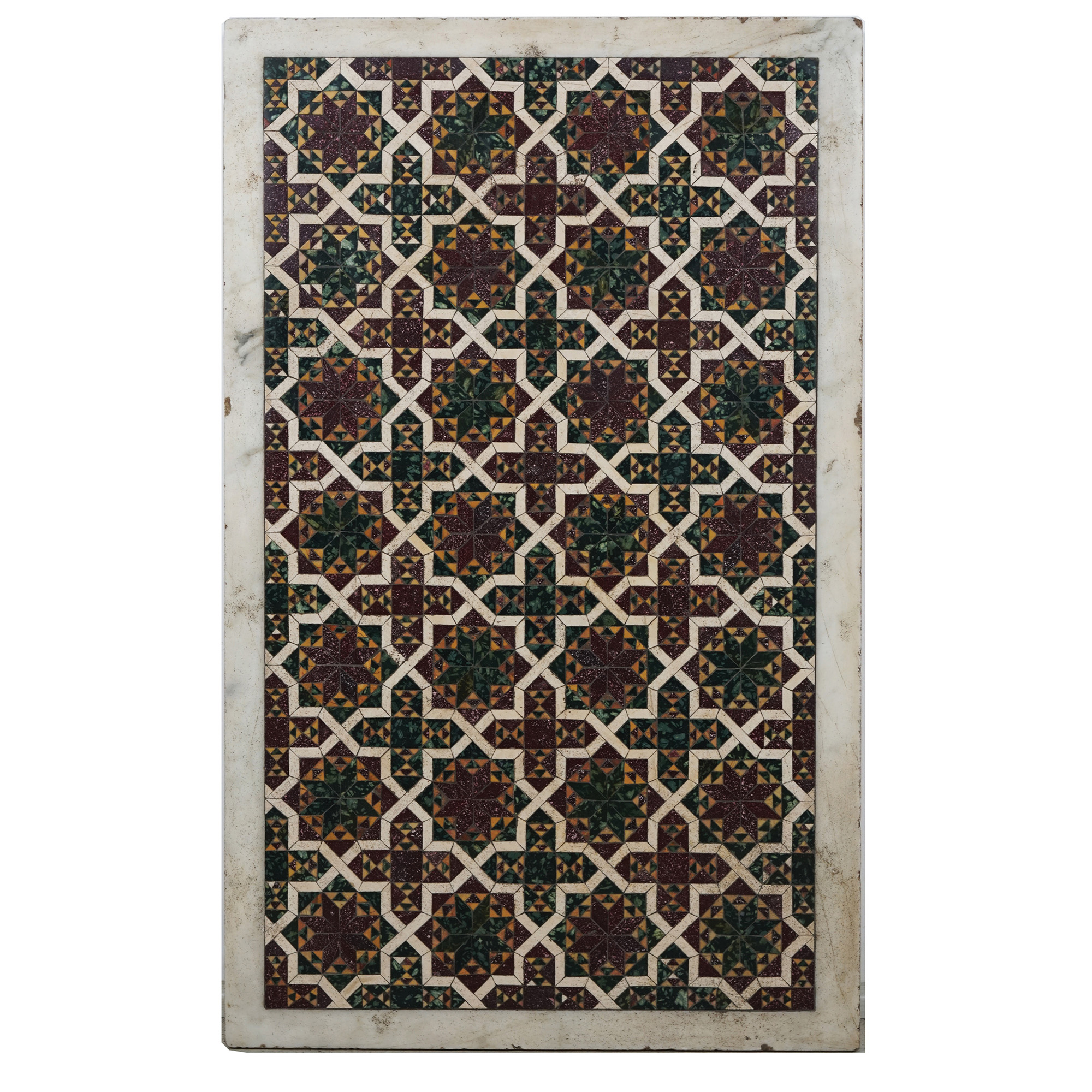 Lot 12 | Piano di marmo bianco finemente e riccamente intarsiato a motivi cosmateschi...
