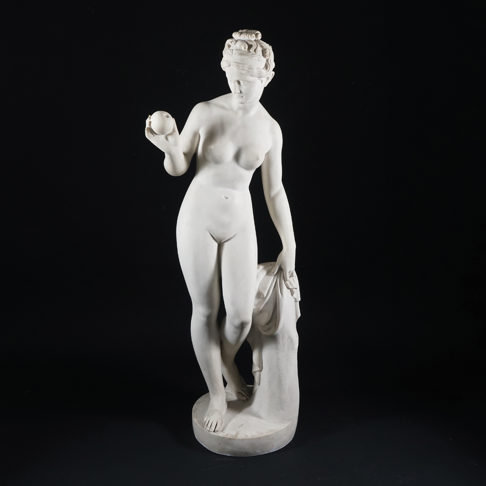 Scultura in pasta di marmo raffigurante Venere con mela, dall'originale di Bertel Thorvaldsen al museo di Copenaghen, h. cm. 122 (braccia restaurate)