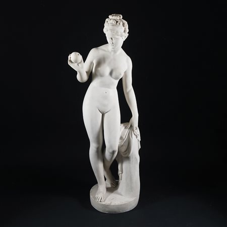 Scultura in pasta di marmo raffigurante Venere con mela, dall'originale di...